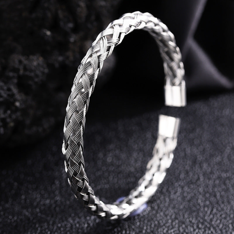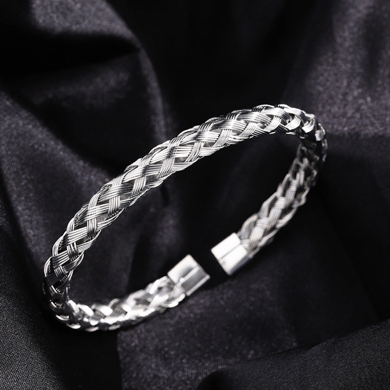 鈦鋼手鐲男士編織手鐲百搭高級感時尚精緻不掉色簡約開口手鐲