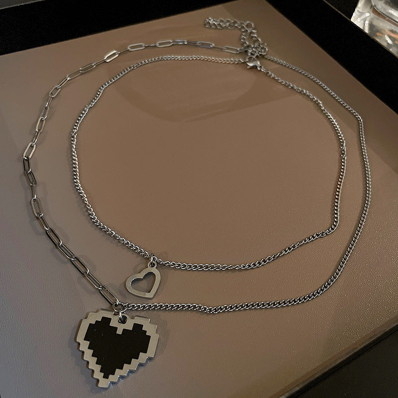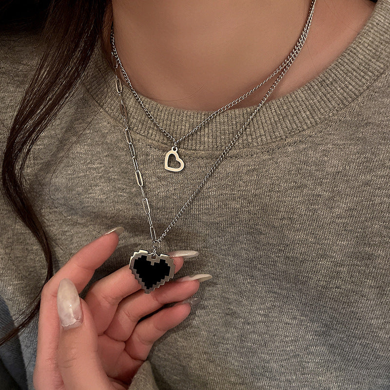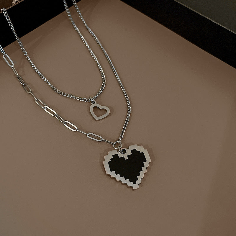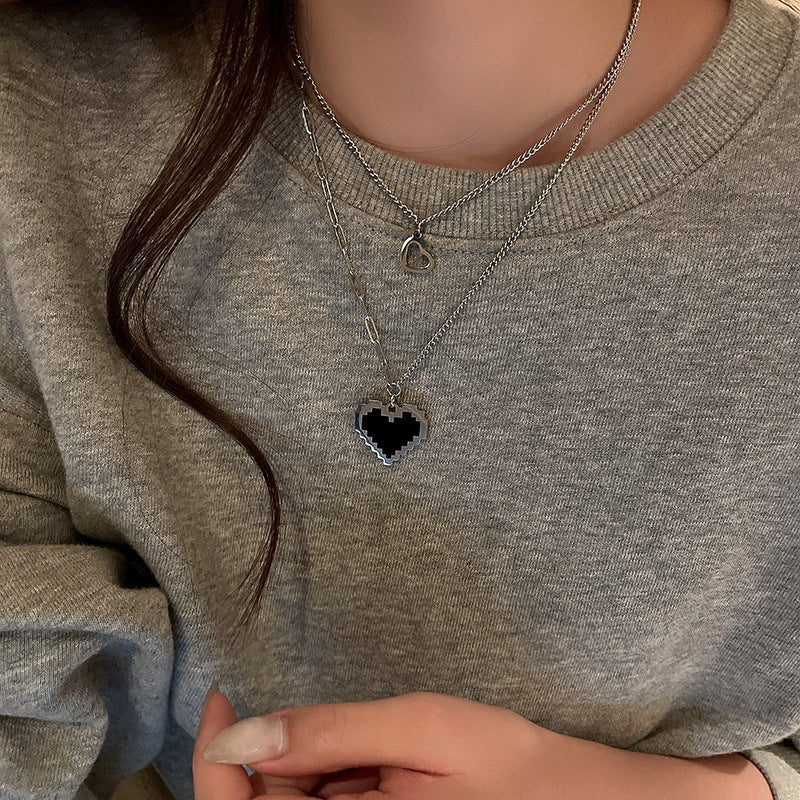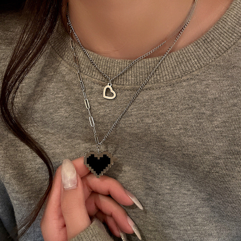 鈦鋼滴油愛心像素項鍊韓國嘻哈少女可愛鎖骨鏈秋冬一款兩戴毛衣鏈