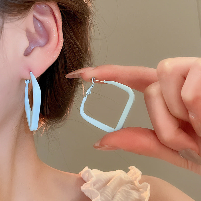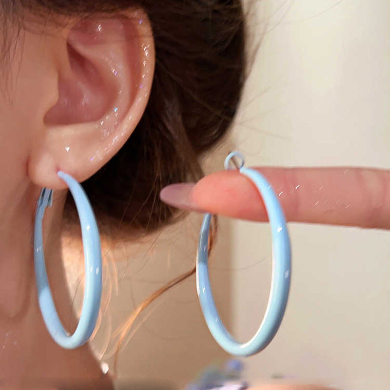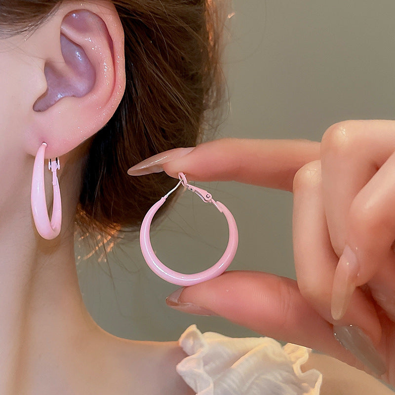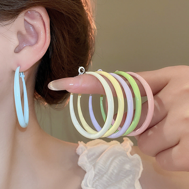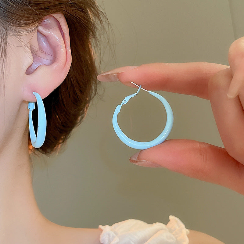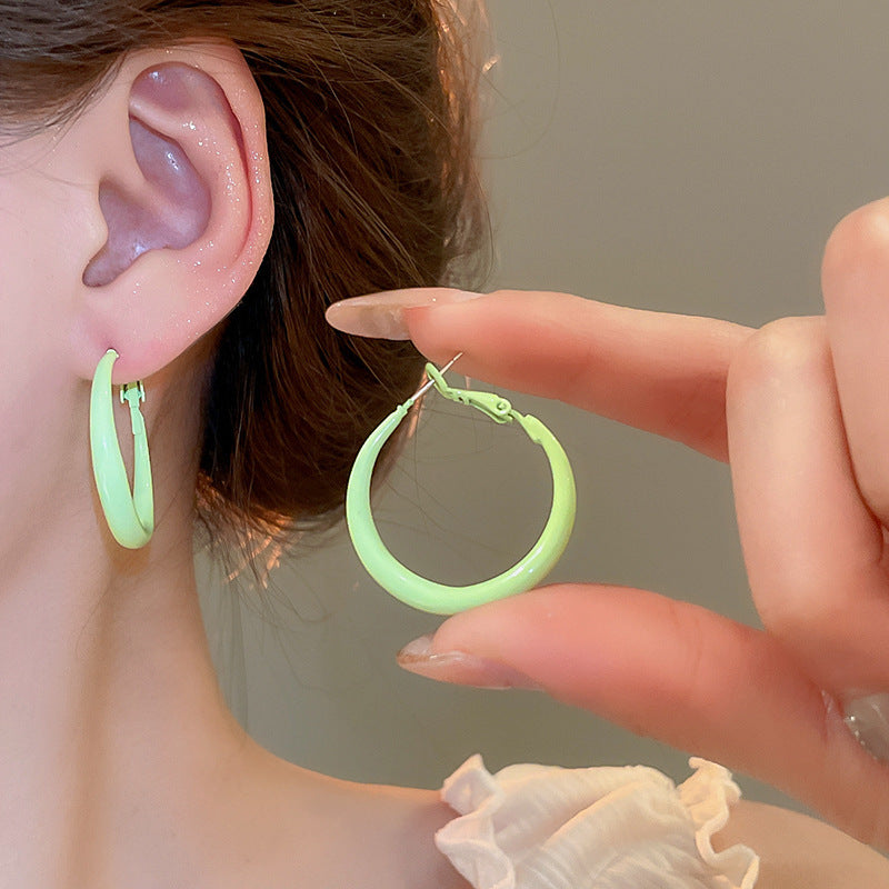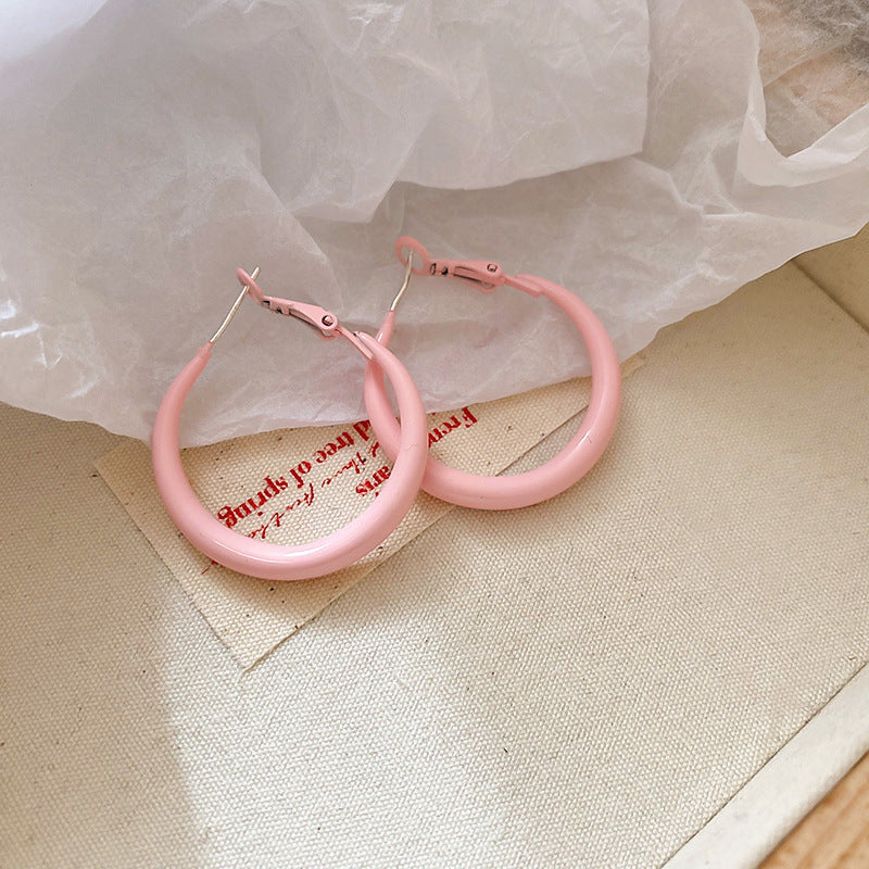 銀針多巴胺彩色耳圈甜美小清新簡約個性耳環設計感小衆歐美耳飾女