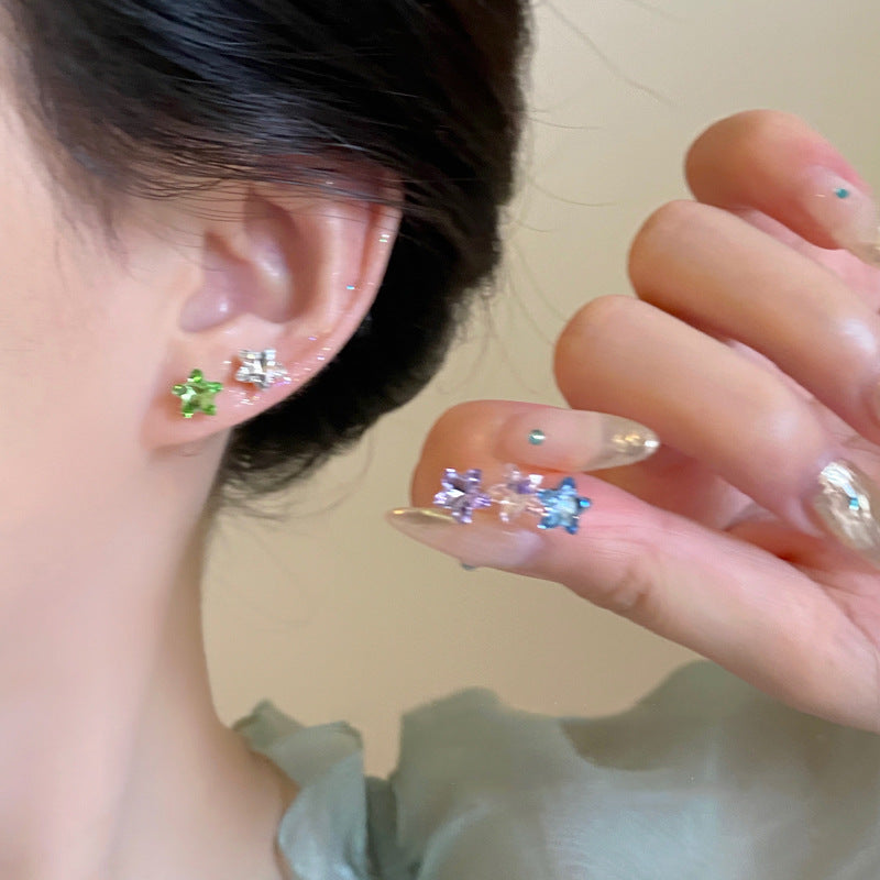 銀針夜市地攤花朵鋯石星星流蘇耳釘時尚氣質耳環簡約高級感耳飾女