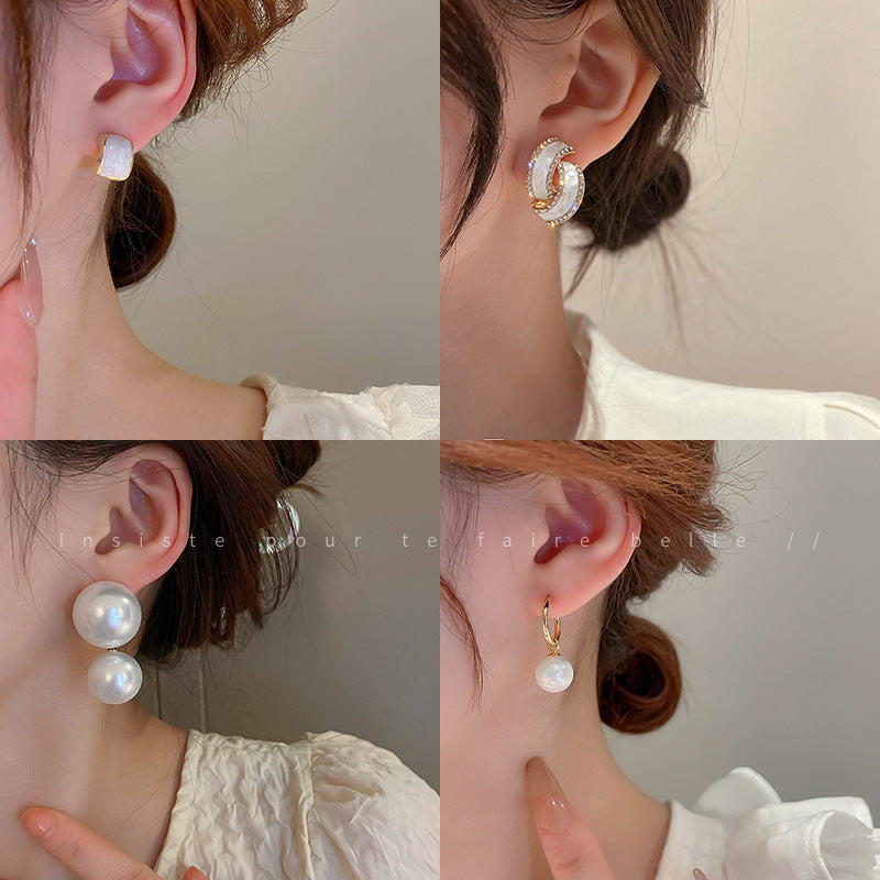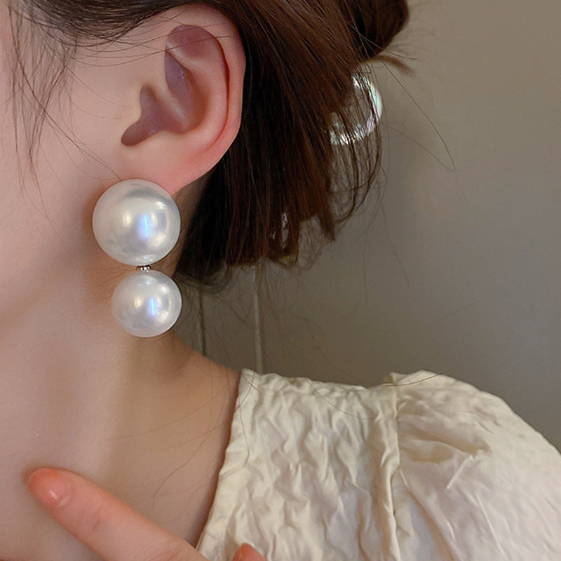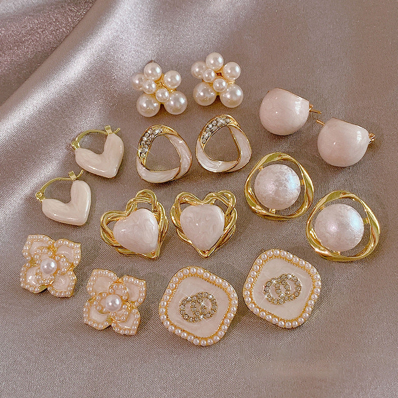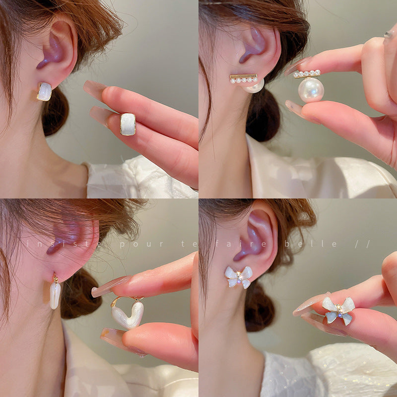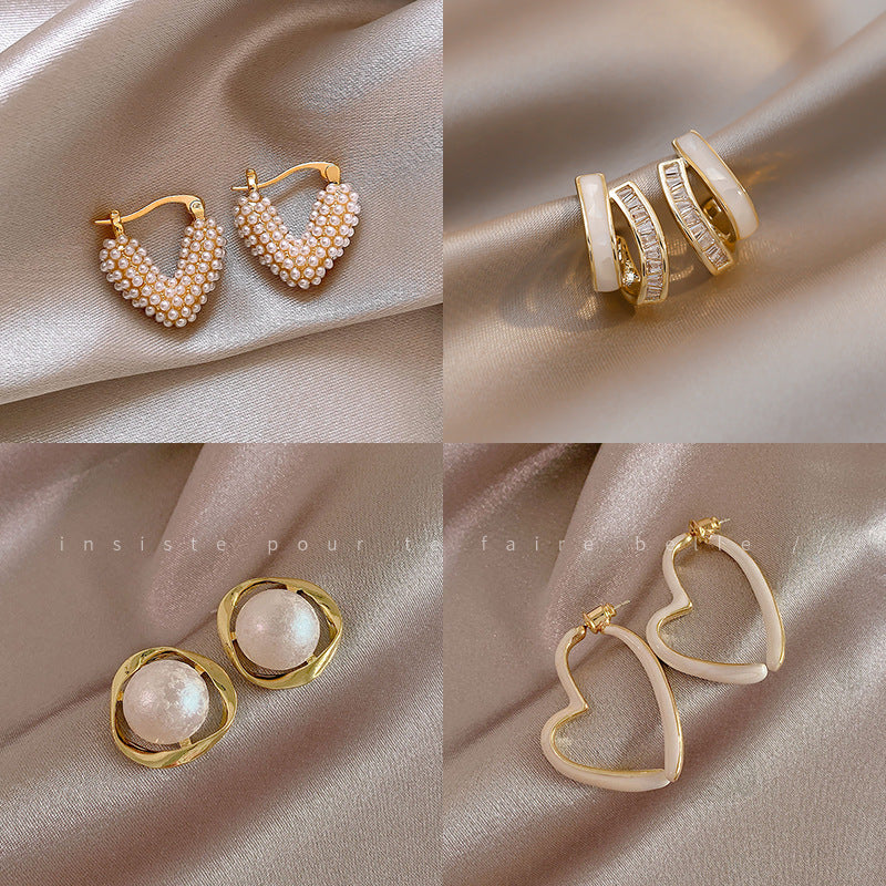 銀針復古氣質白色愛心珍珠耳釘時尚個性耳環網紅簡約高級感耳飾女
