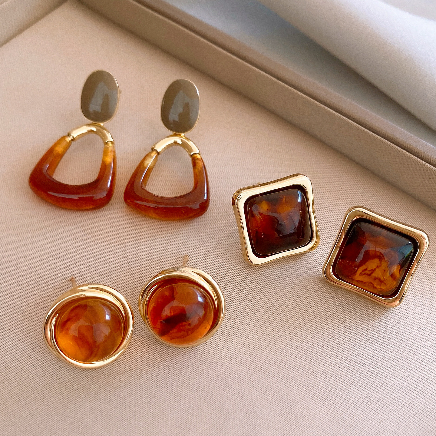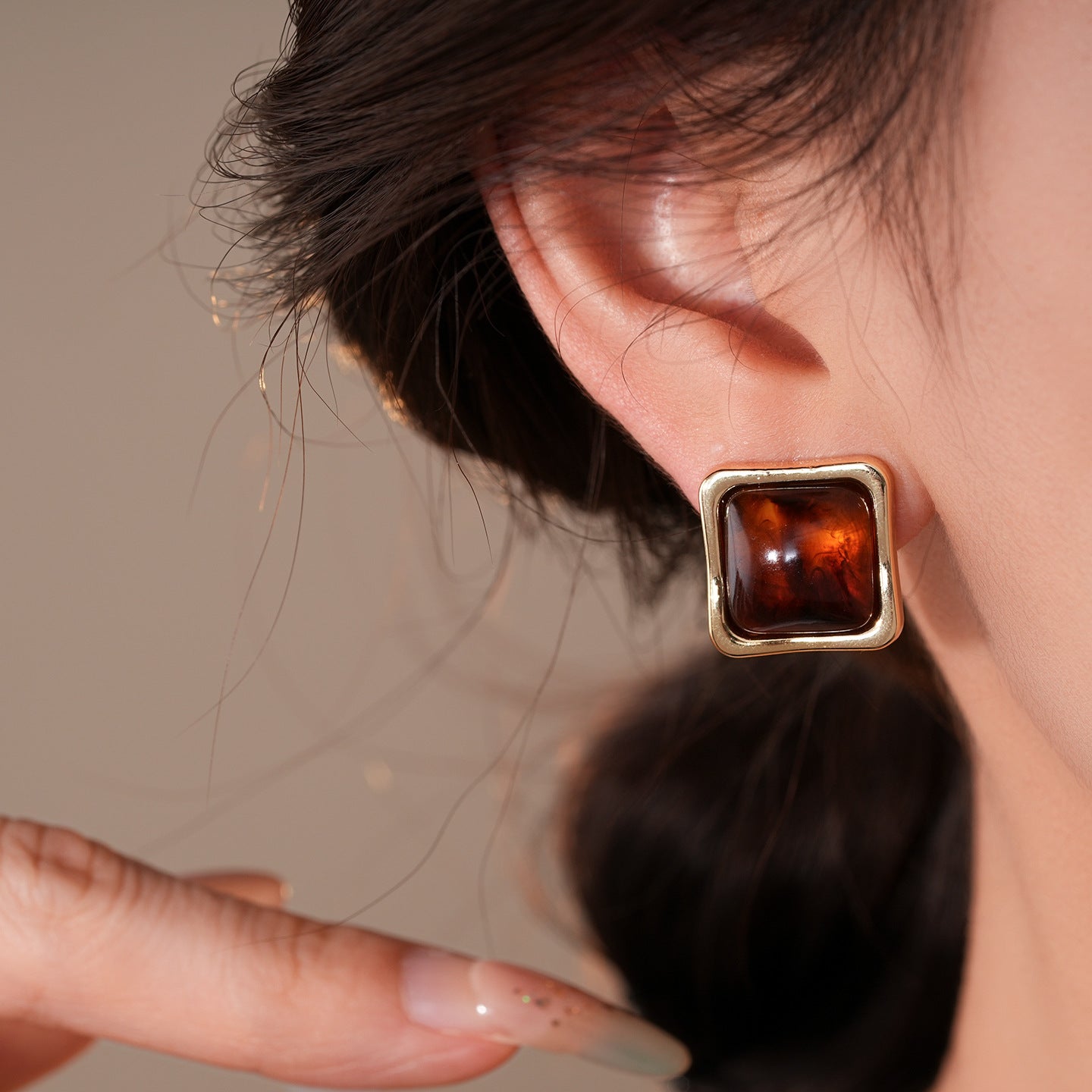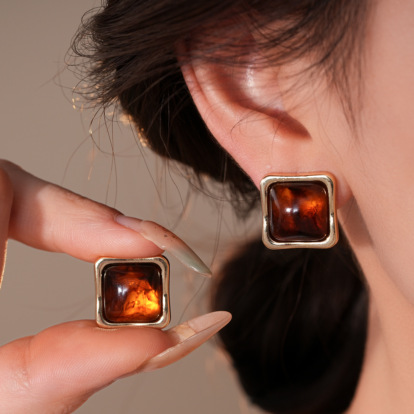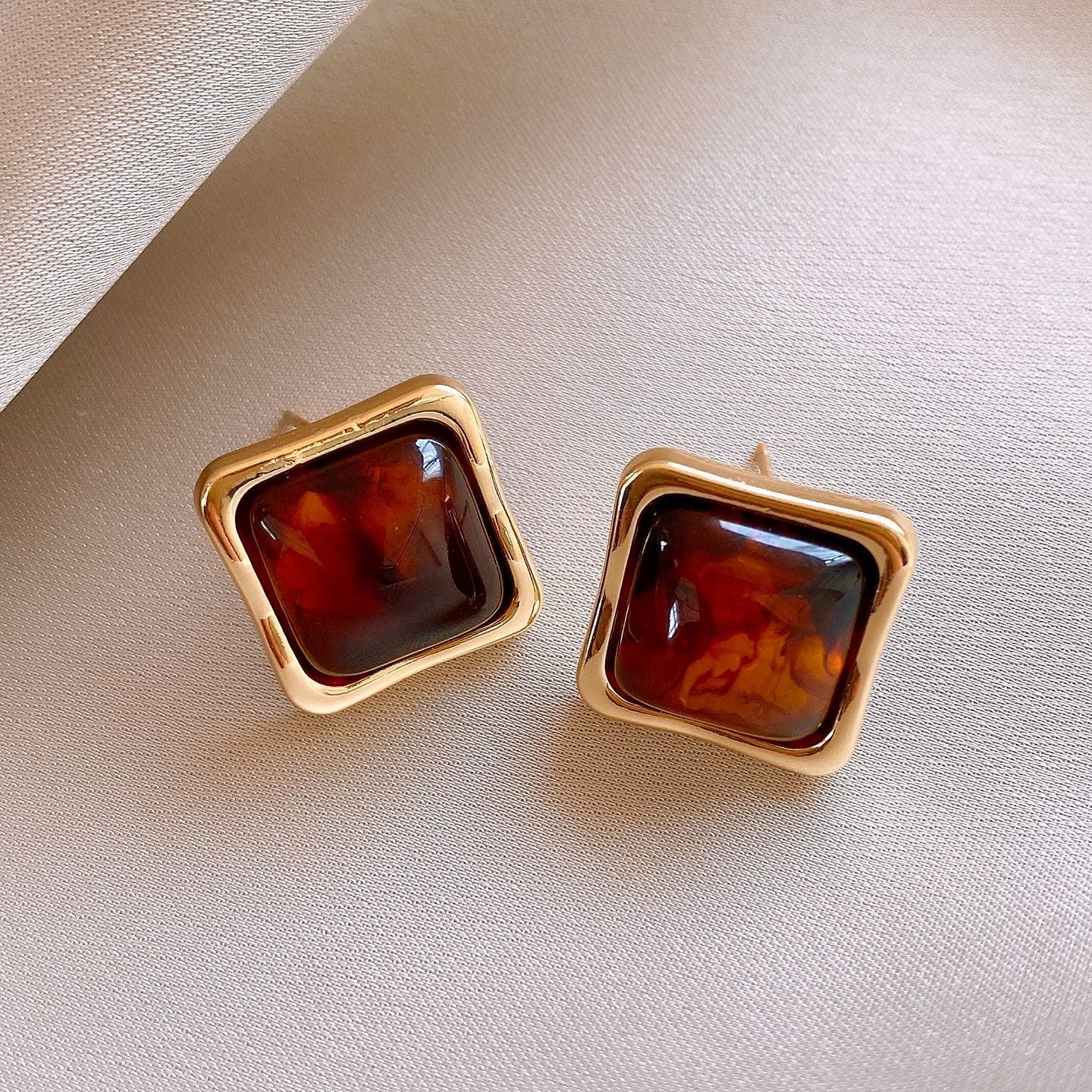 銀針復古美拉德幾何方形耳環輕奢高級感耳釘女時尚耳飾設計感小衆