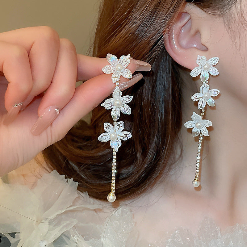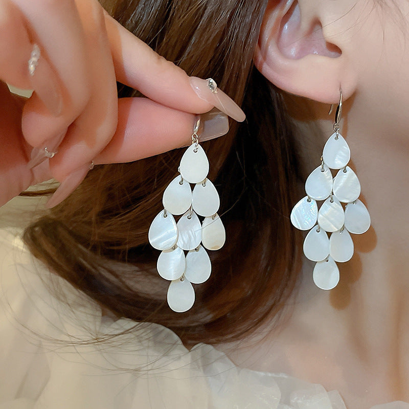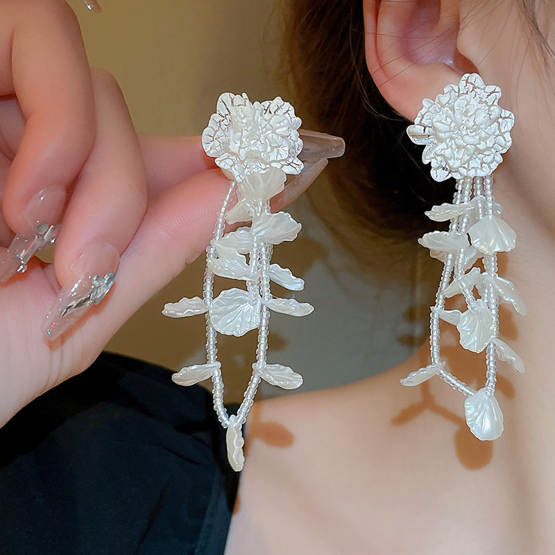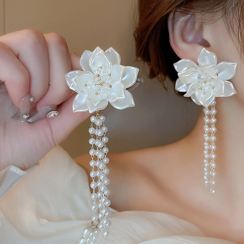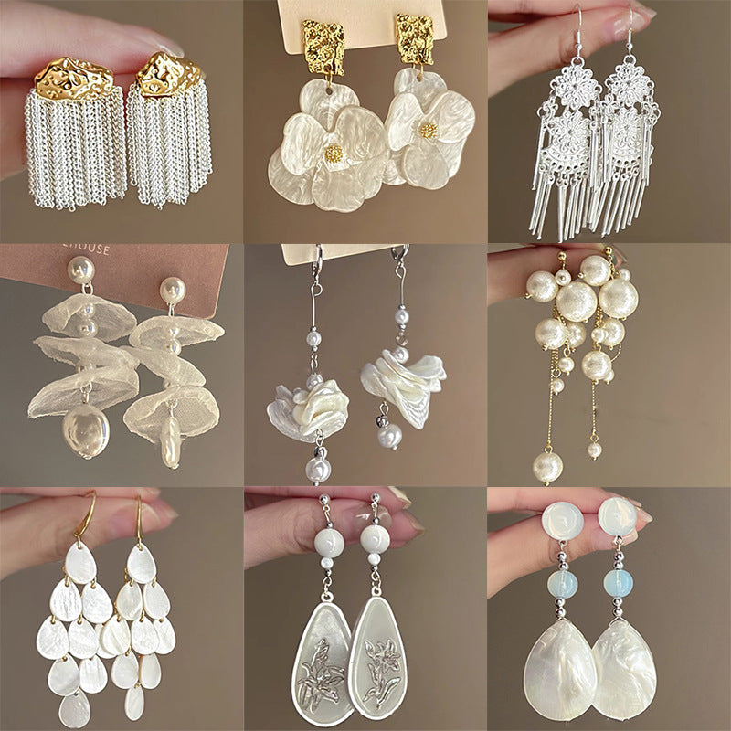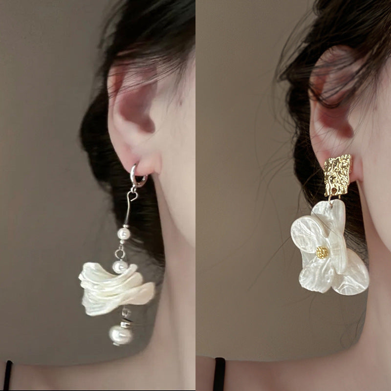 銀針時尚白色系花朵貝殼珍珠耳環氣質新款耳釘歐美時尚高級感耳飾