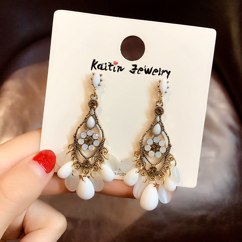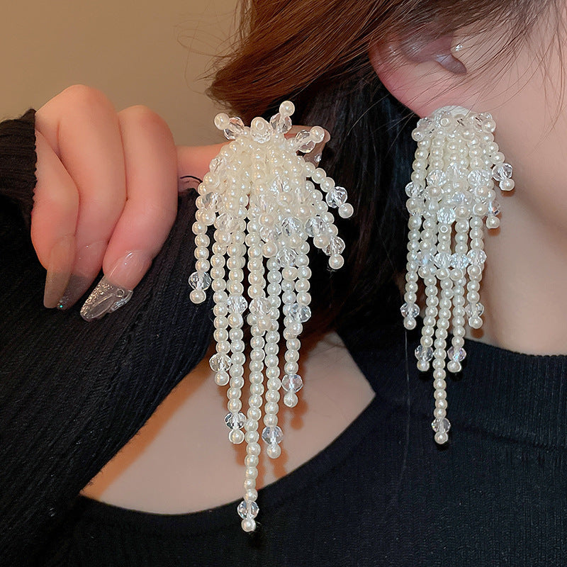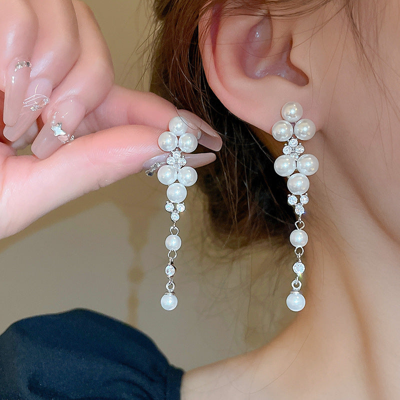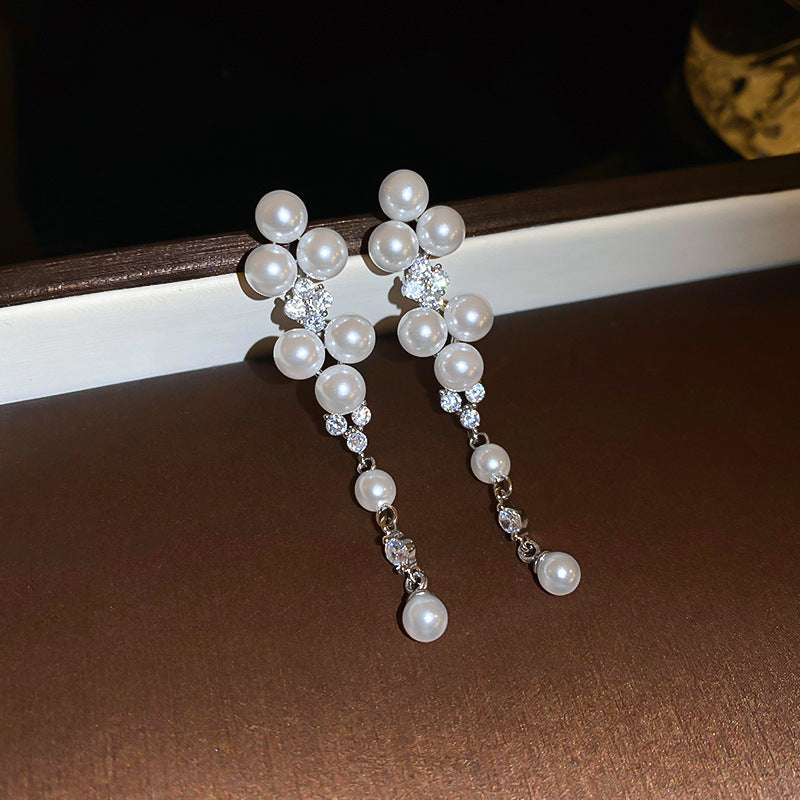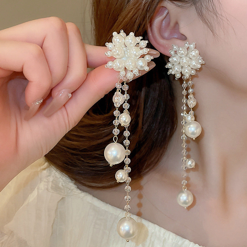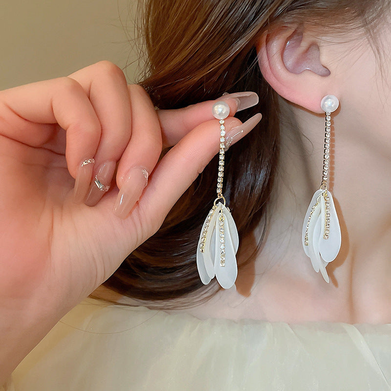 銀針時尚白色系花朵貝殼珍珠耳環氣質新款耳釘歐美時尚高級感耳飾