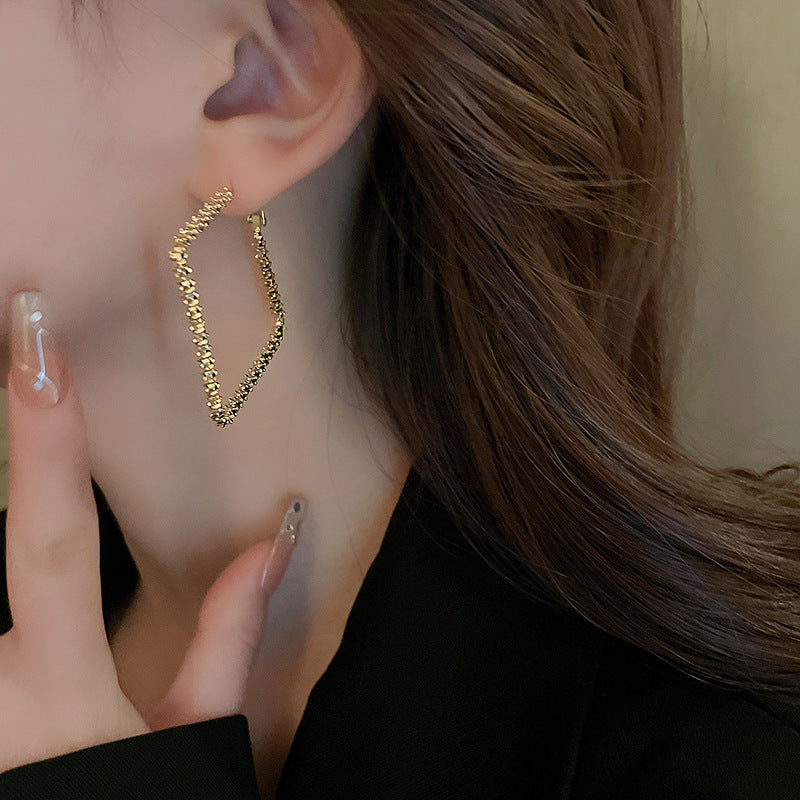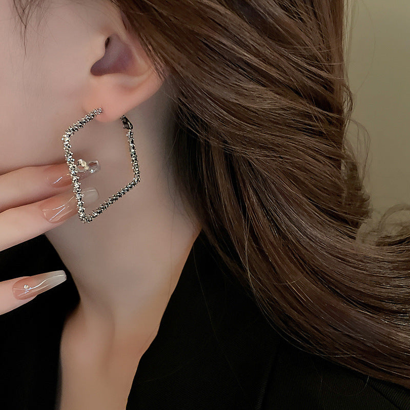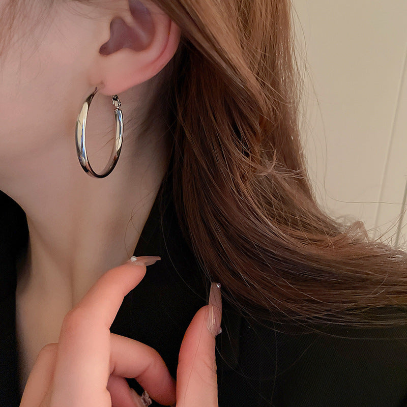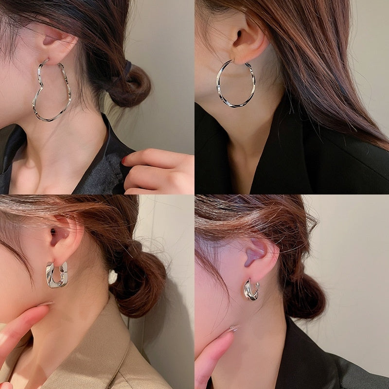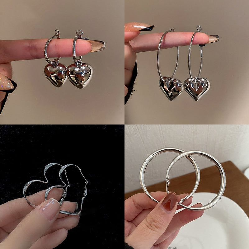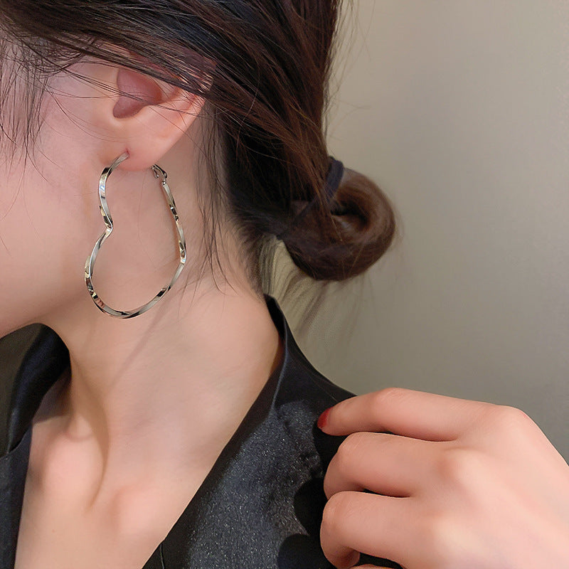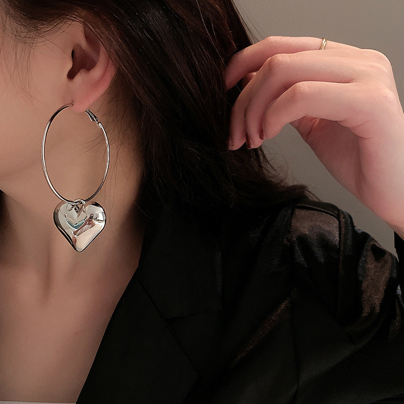銀針歐美誇張銀色素圈愛心耳環冷淡風時尚耳圈輕奢個性高級感耳飾