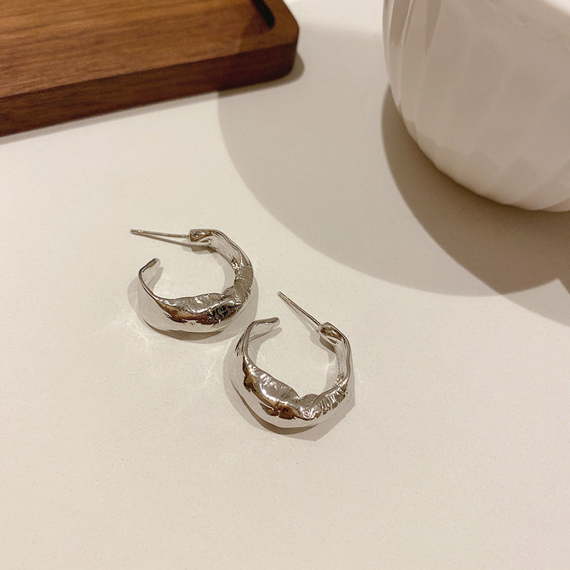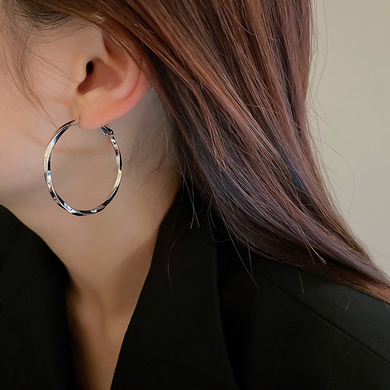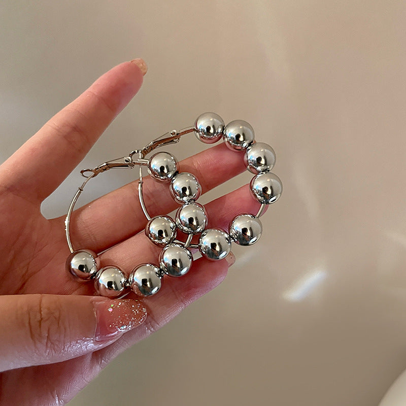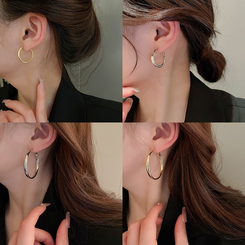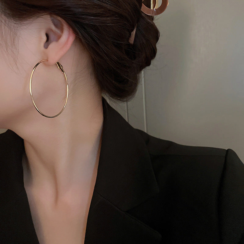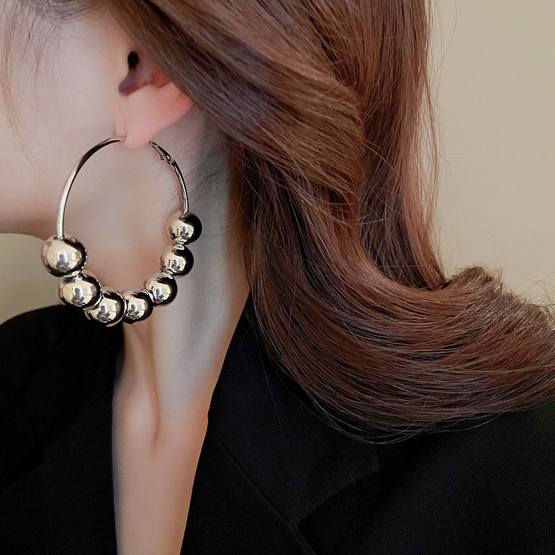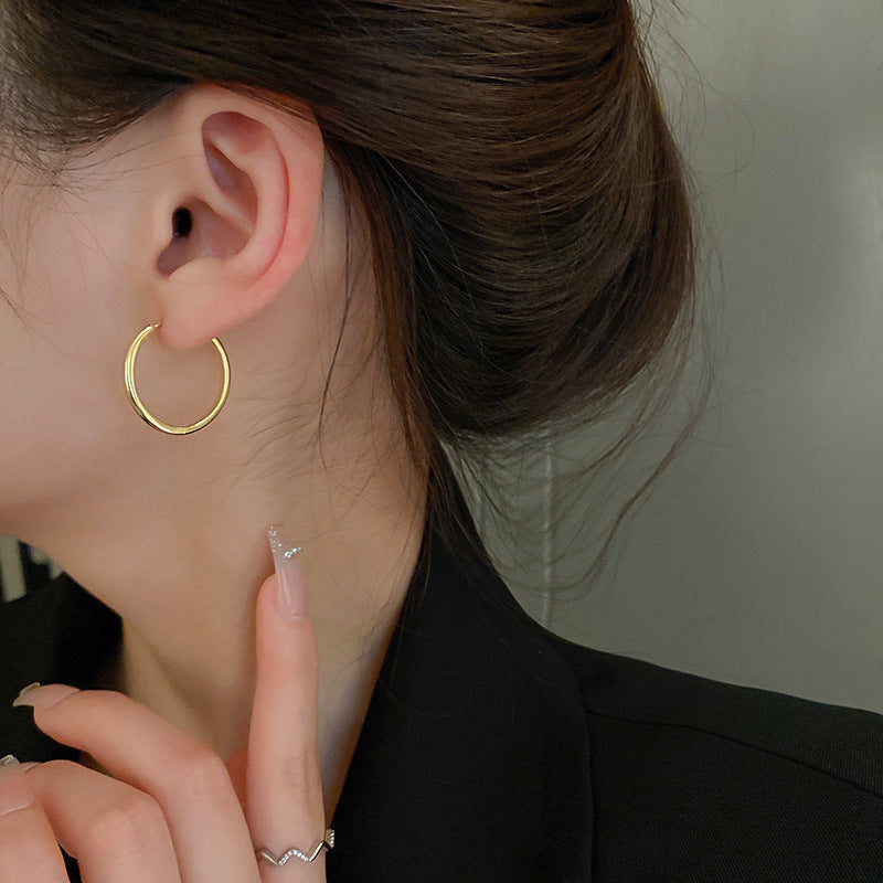 銀針歐美誇張銀色素圈愛心耳環冷淡風時尚耳圈輕奢個性高級感耳飾