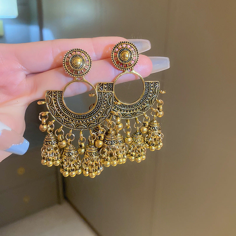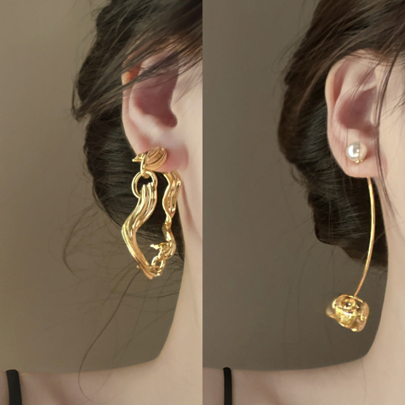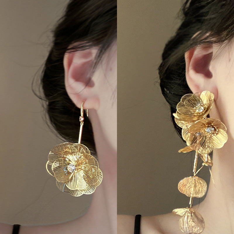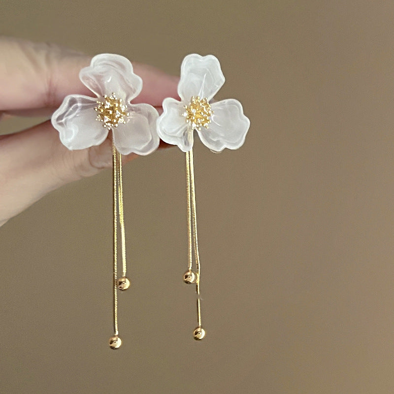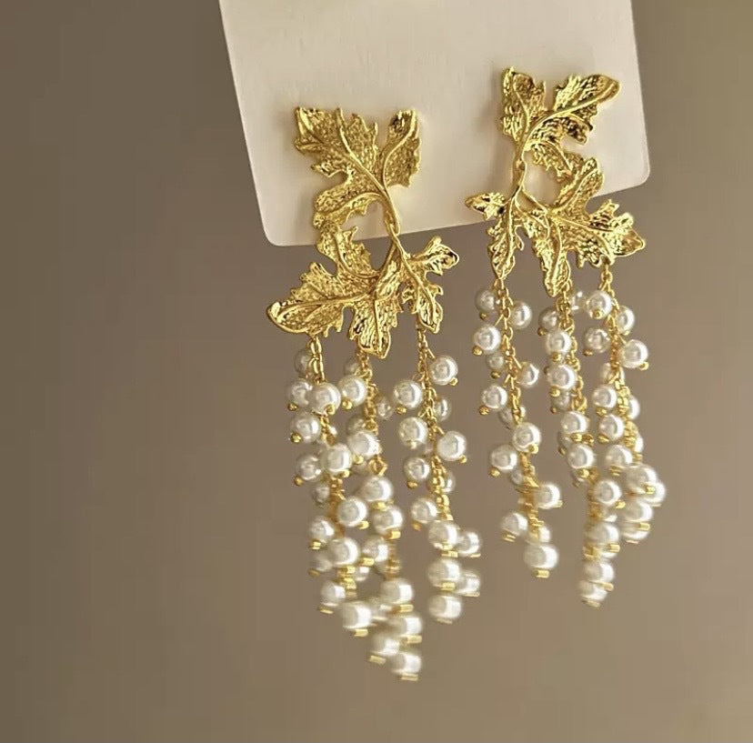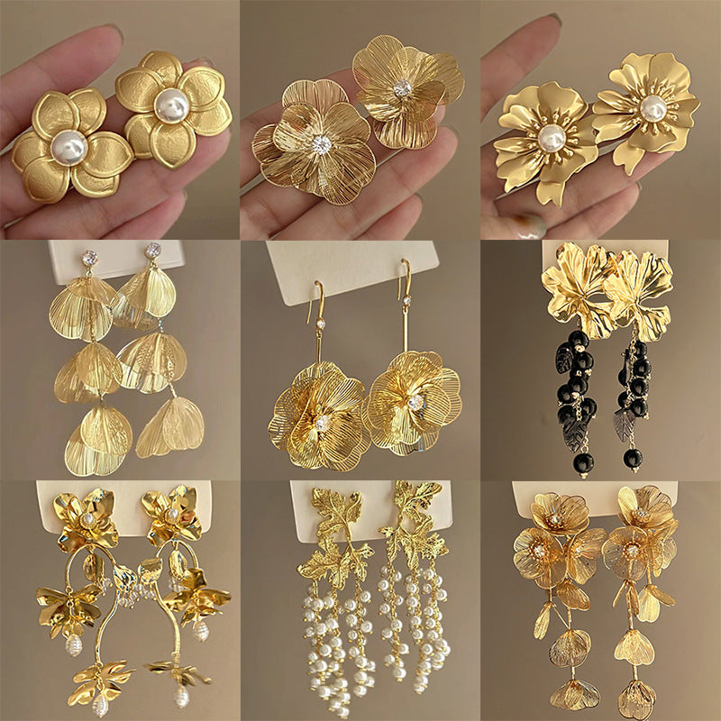 銀針歐美跨境專供花朵珍珠流蘇耳環氣質個性耳釘誇張高級感耳飾女