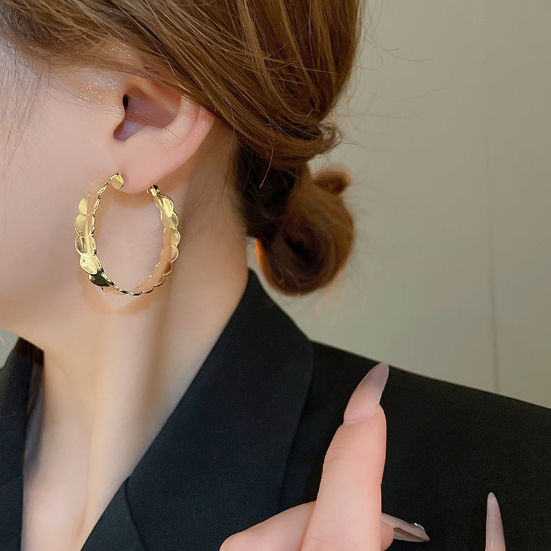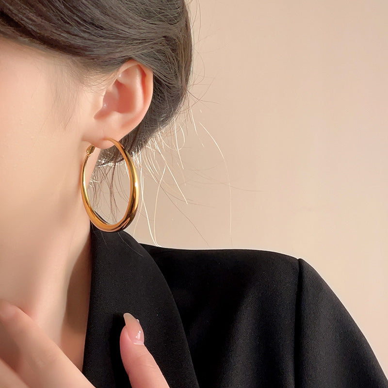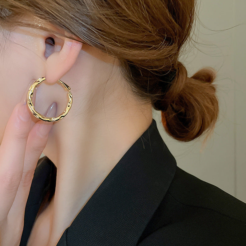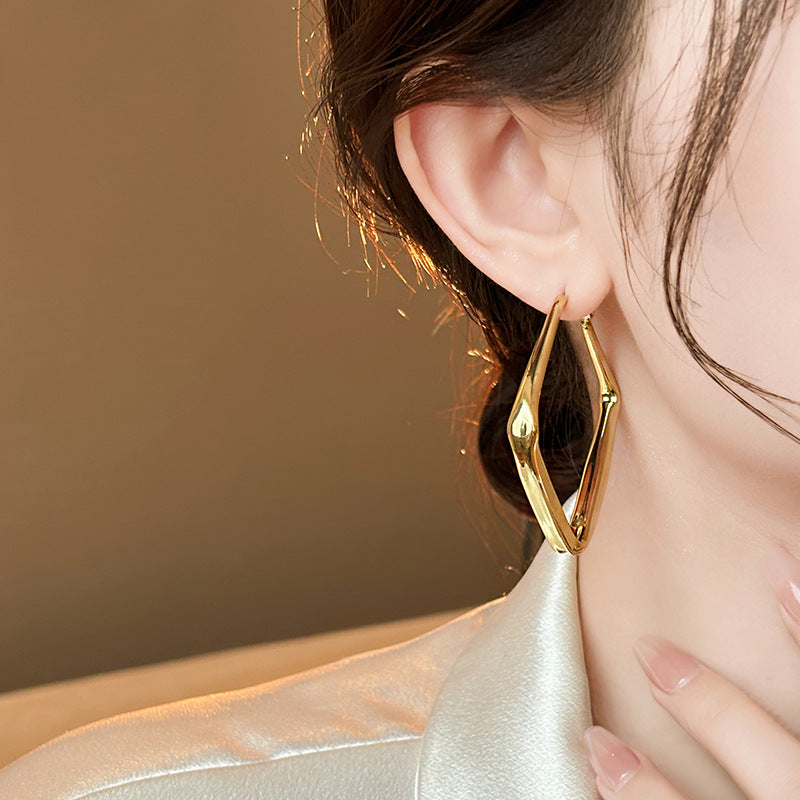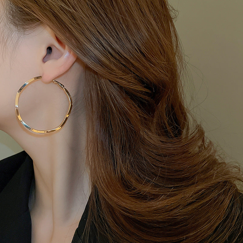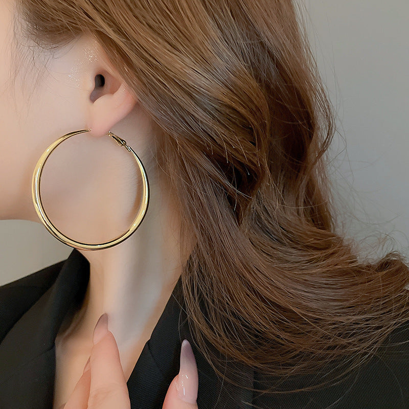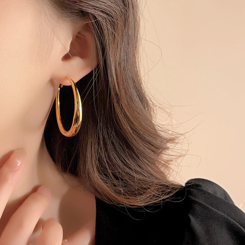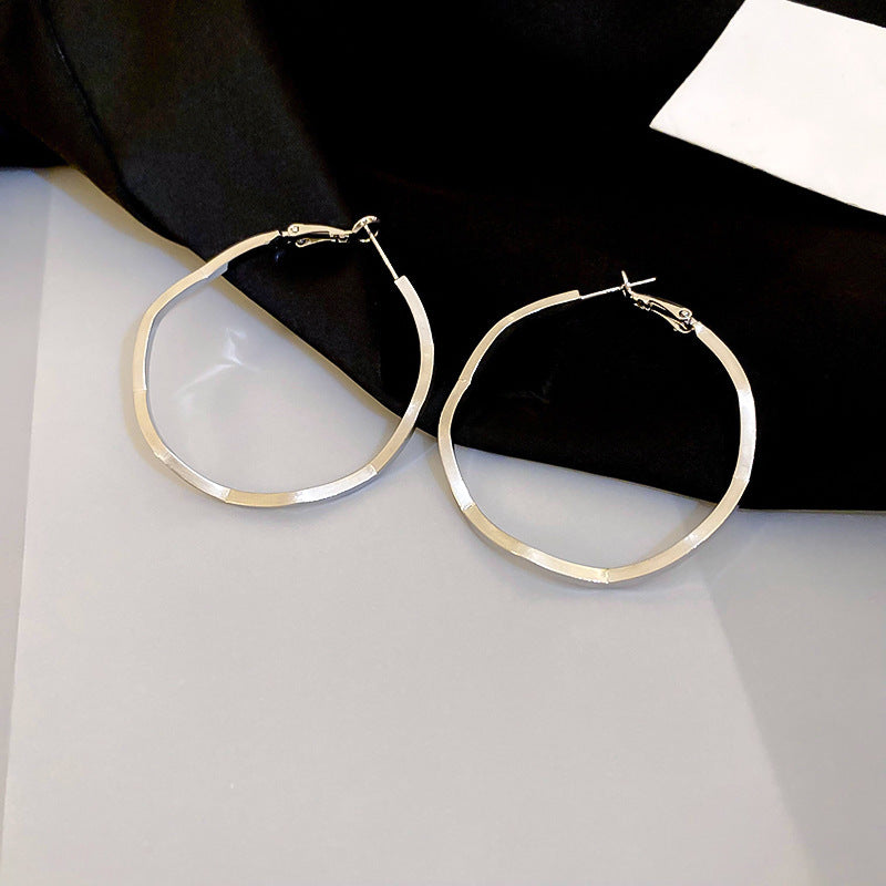 銀針歐美跨境金屬風素圈幾何耳圈氣質個性耳釘耳環誇張高級感耳飾