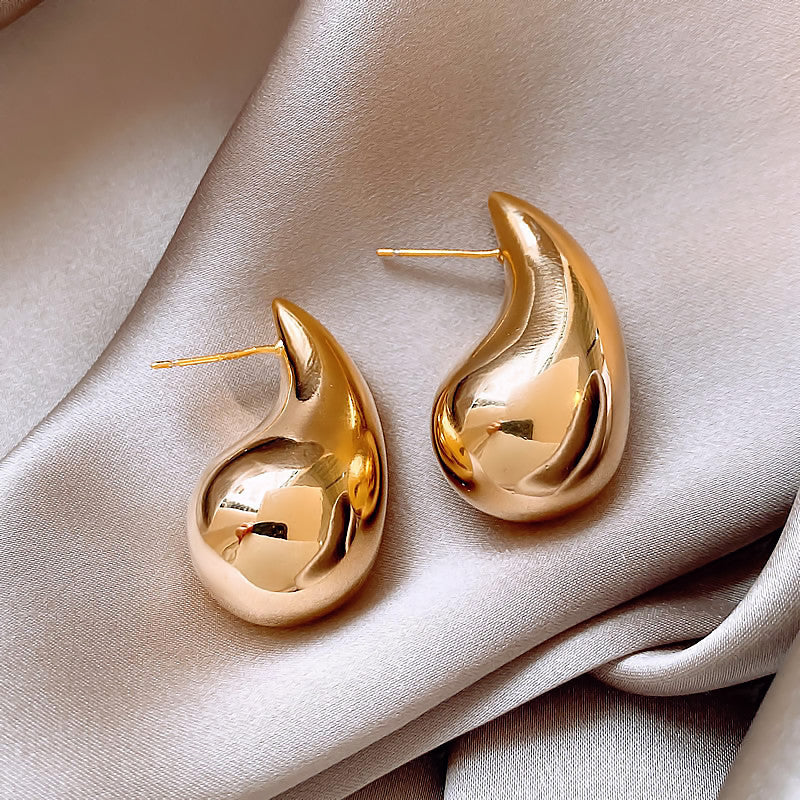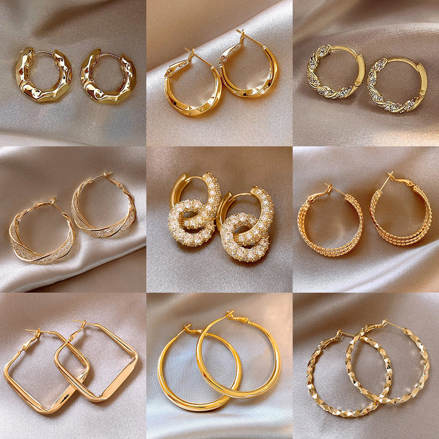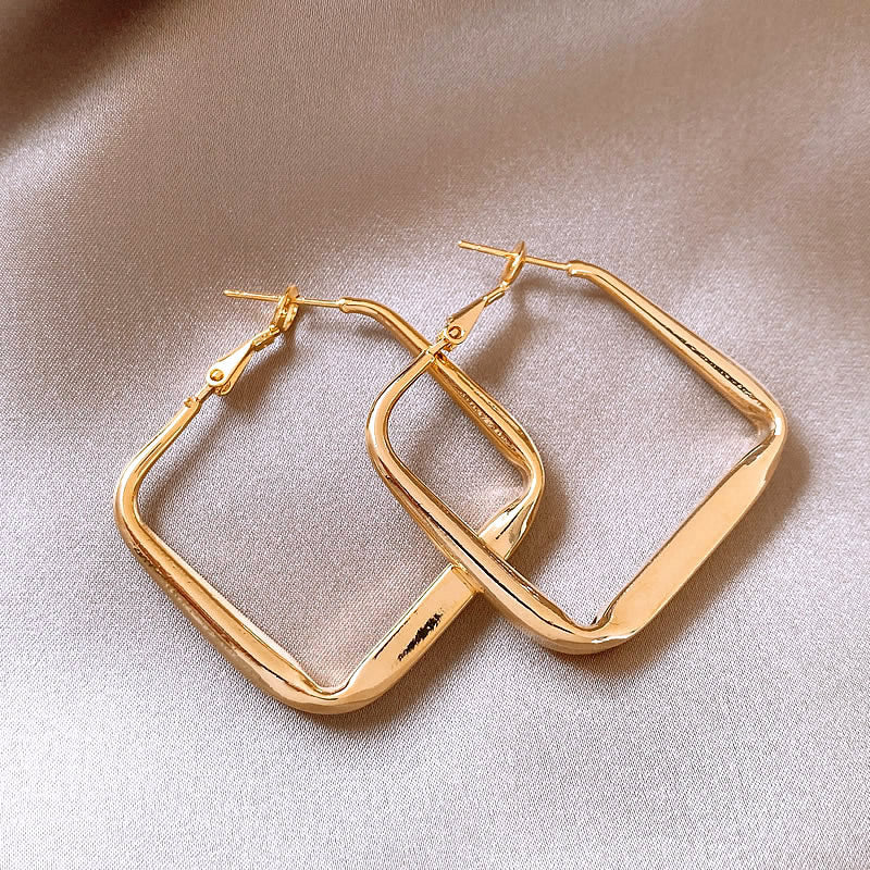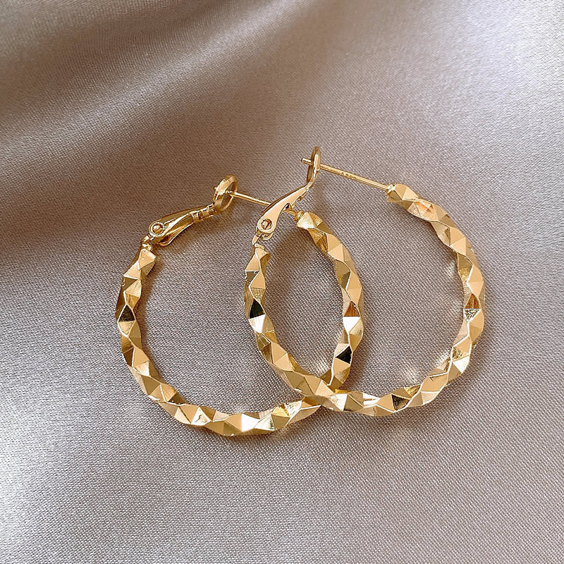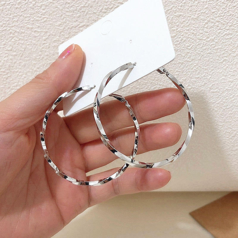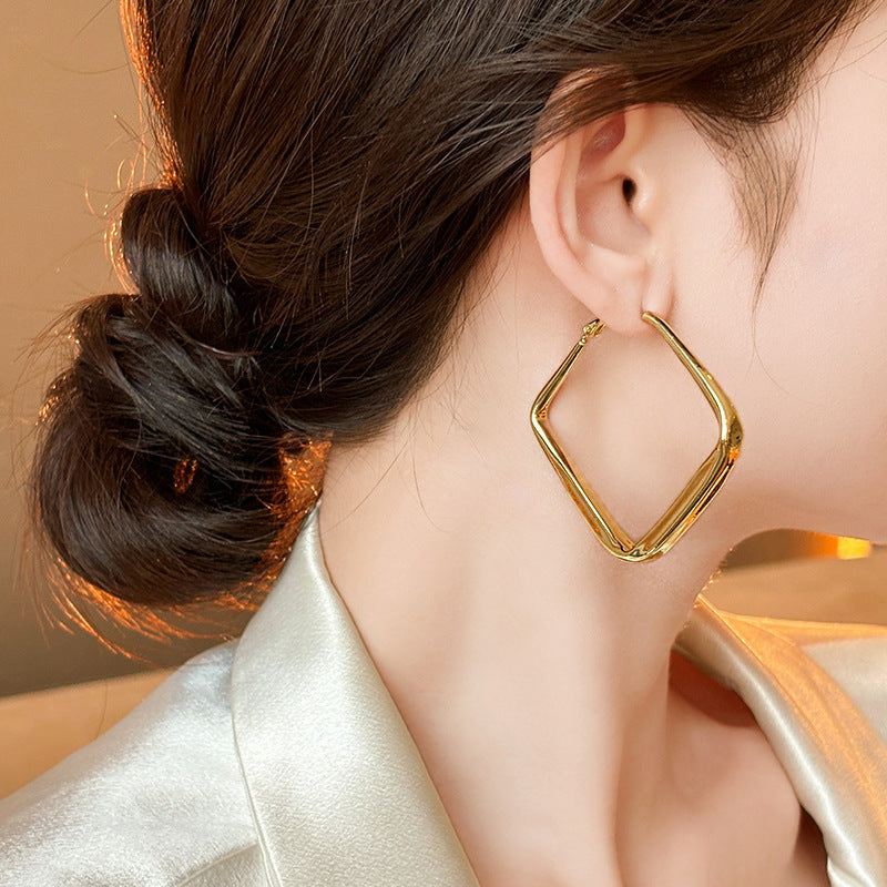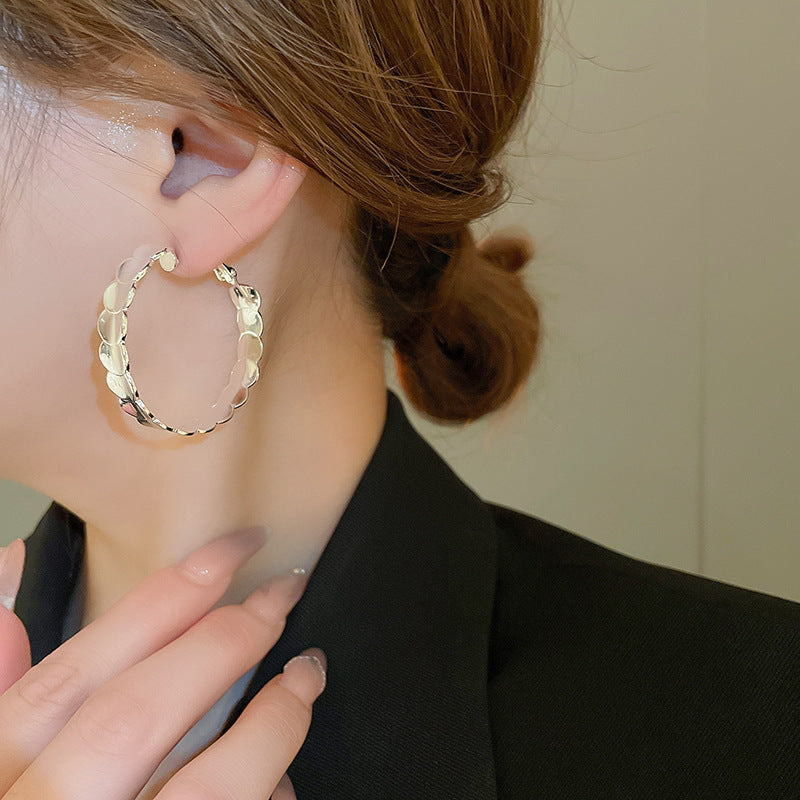 銀針歐美跨境金屬風素圈幾何耳圈氣質個性耳釘耳環誇張高級感耳飾