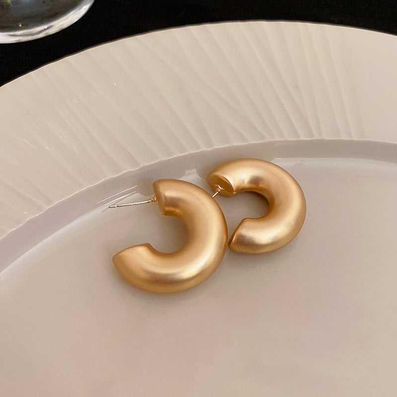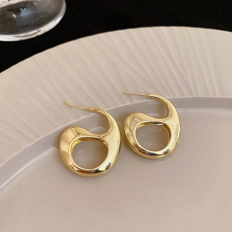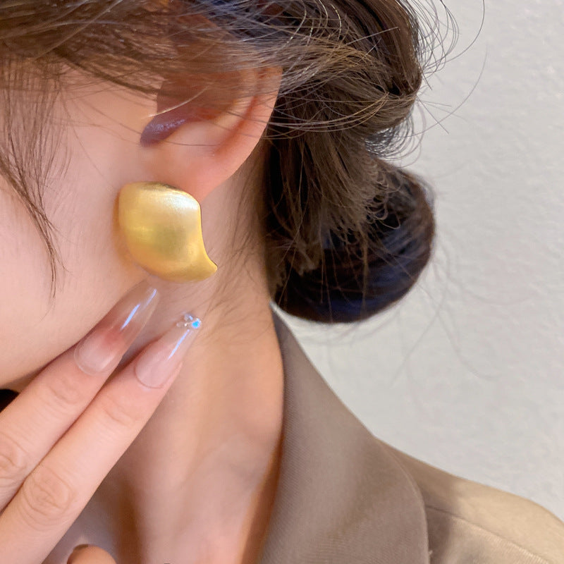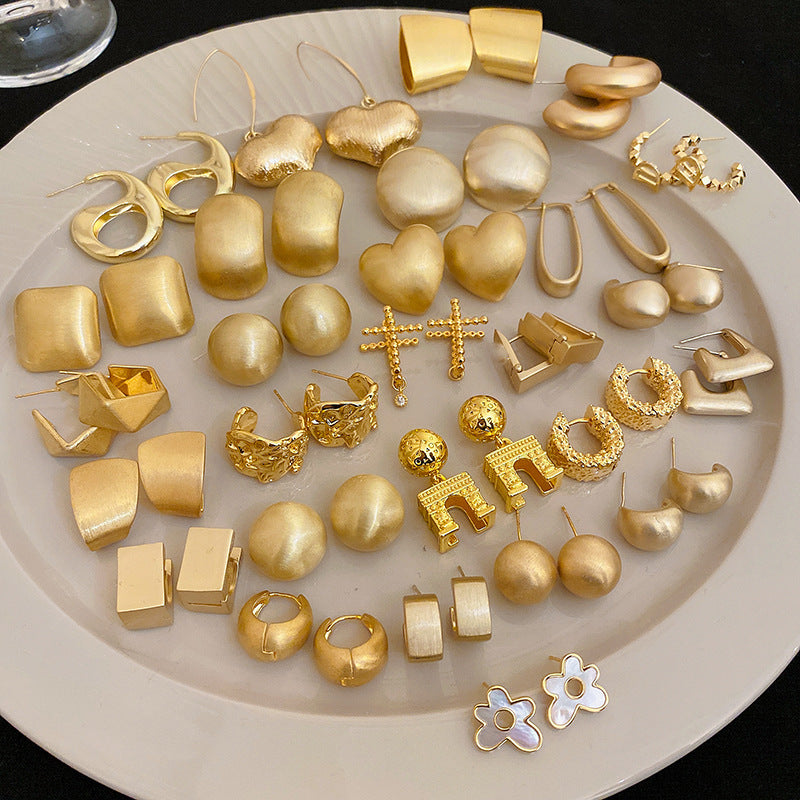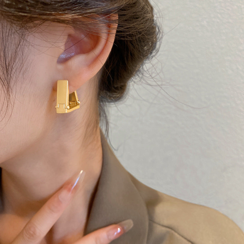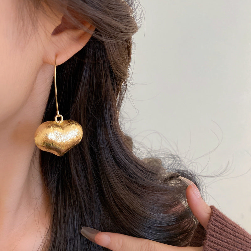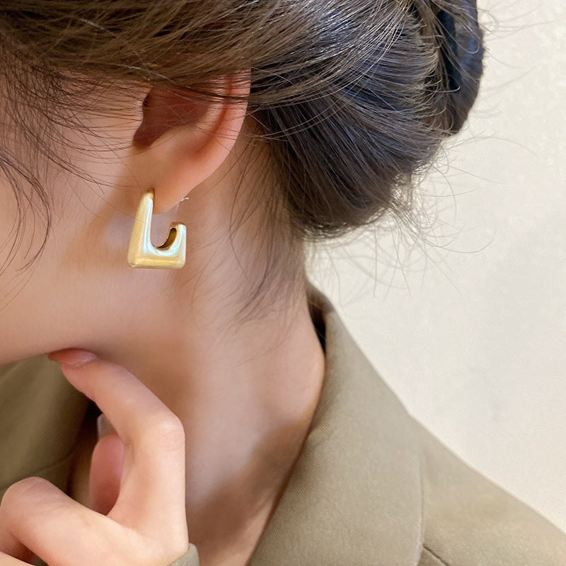 銀針歐美輕奢金屬風拉絲方形愛心耳環女網紅個性幾何耳釘時尚耳飾