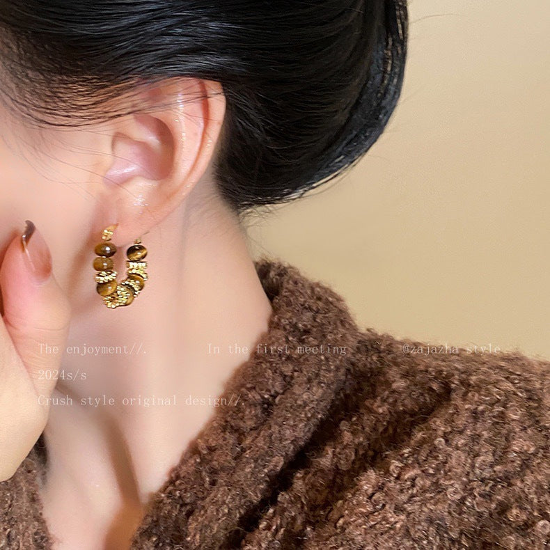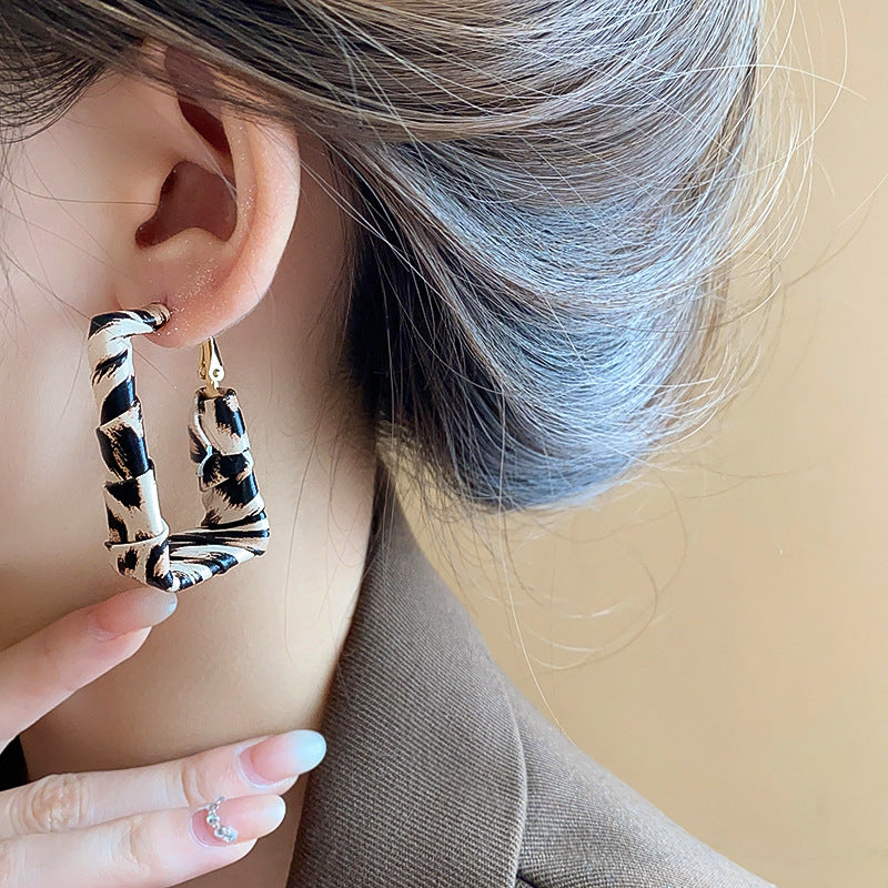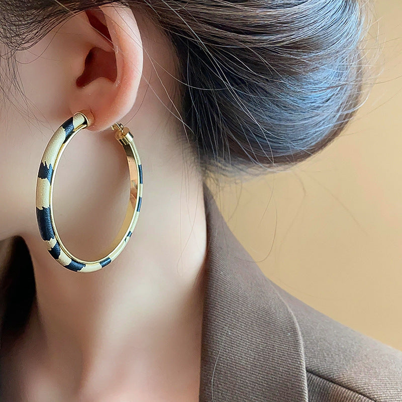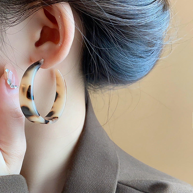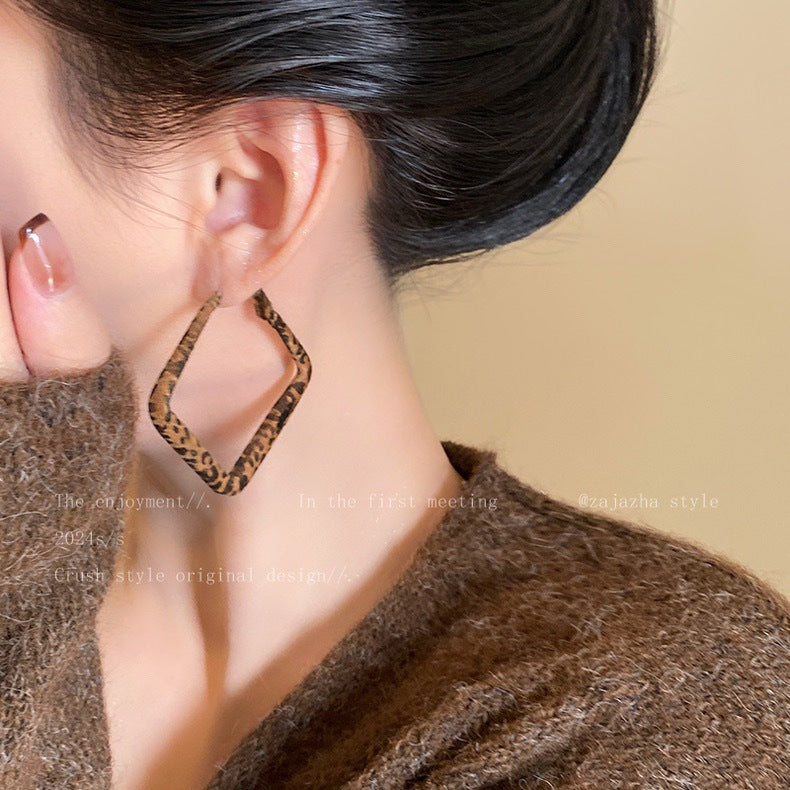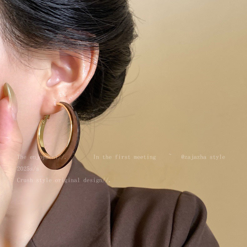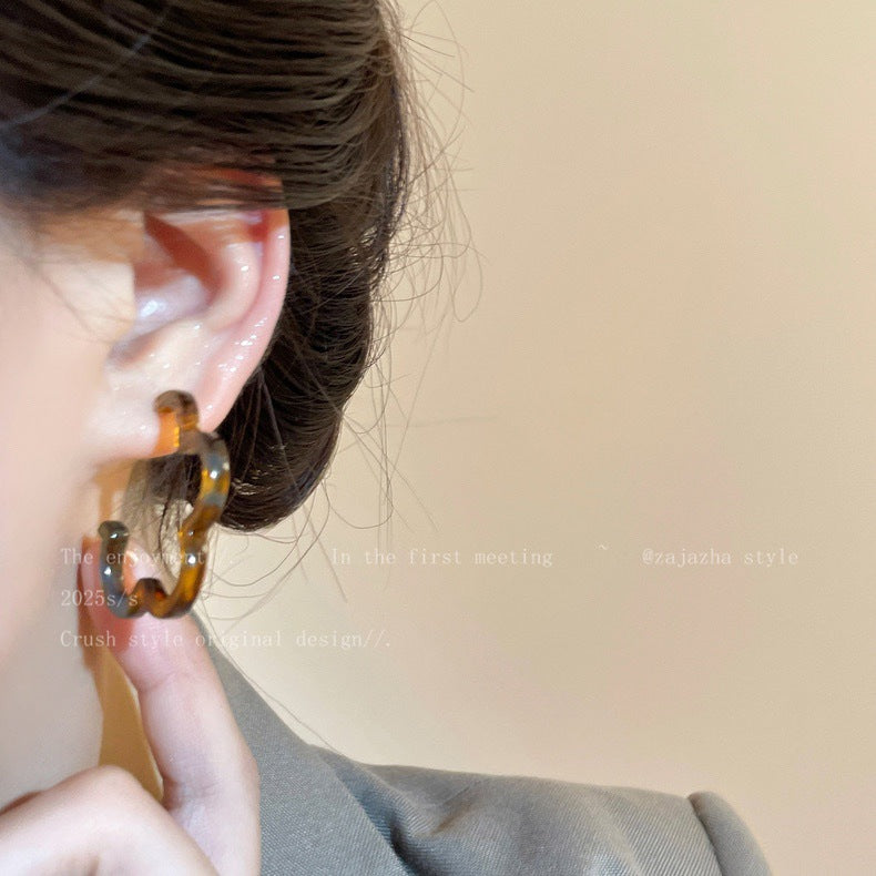 銀針秋冬復古咖色圓圈豹紋樹脂耳環輕奢高級感耳釘時尚氣質耳飾女