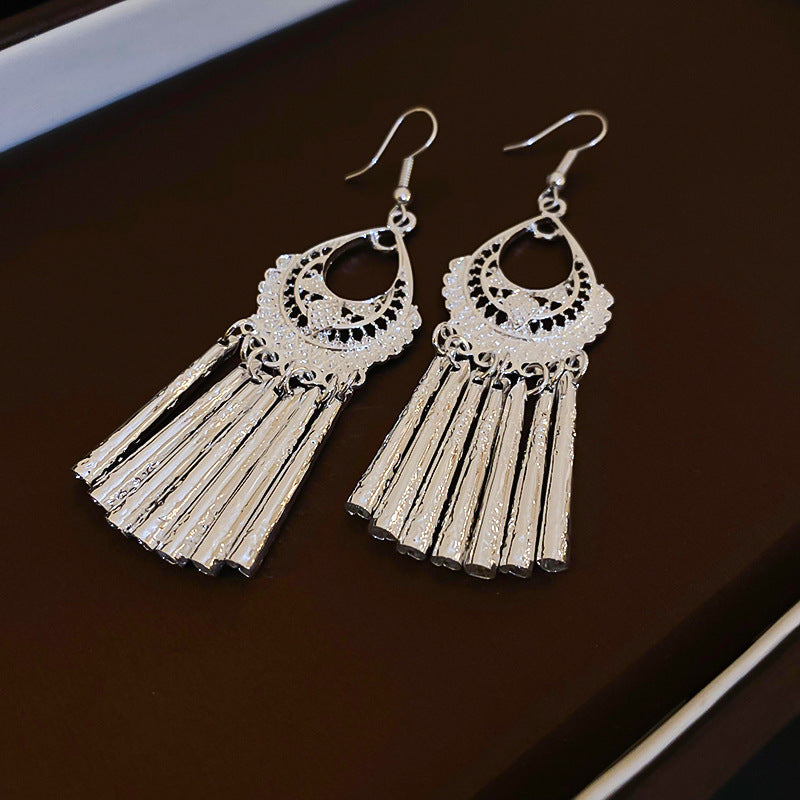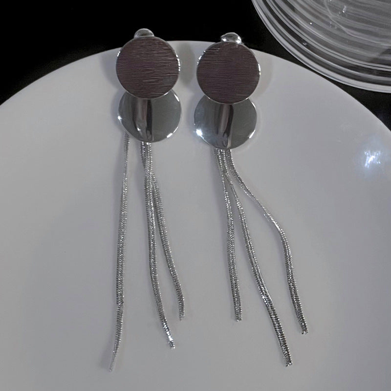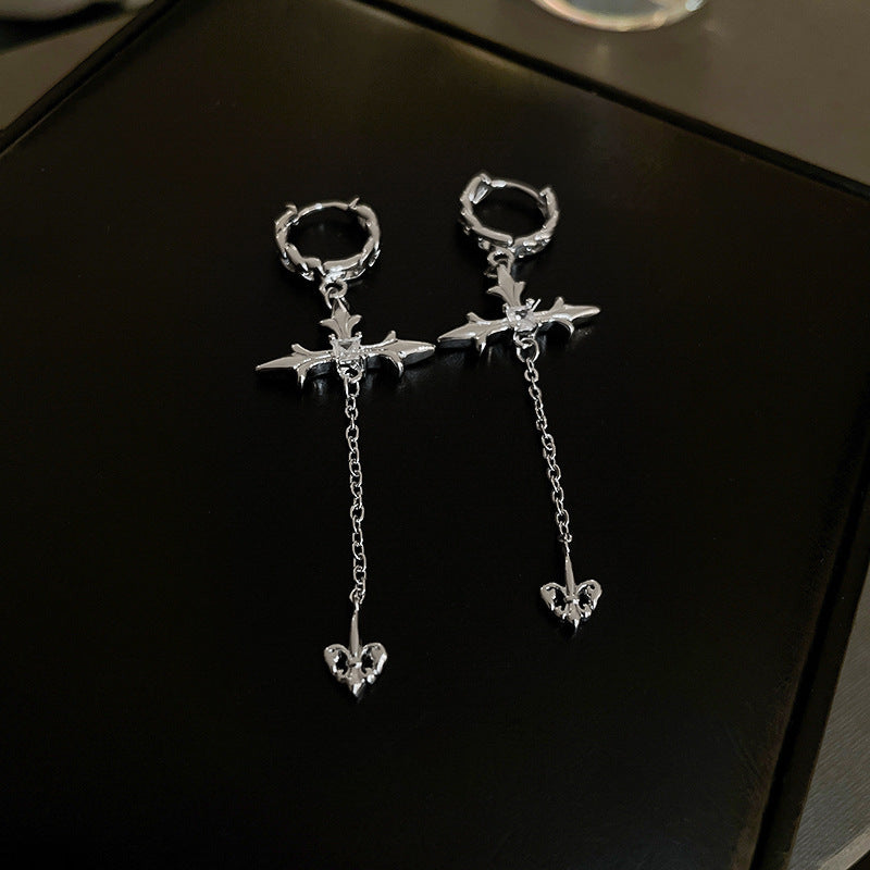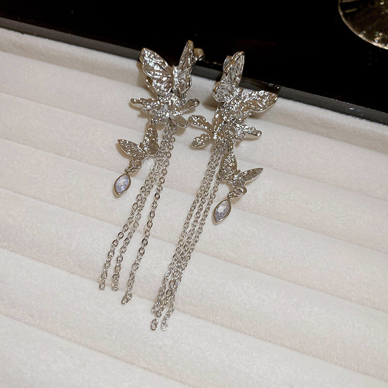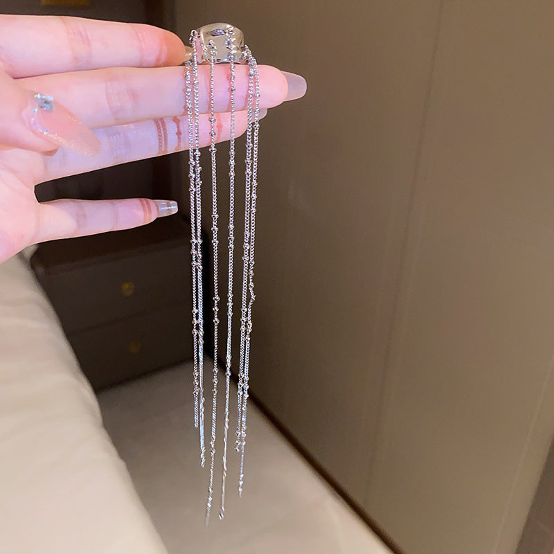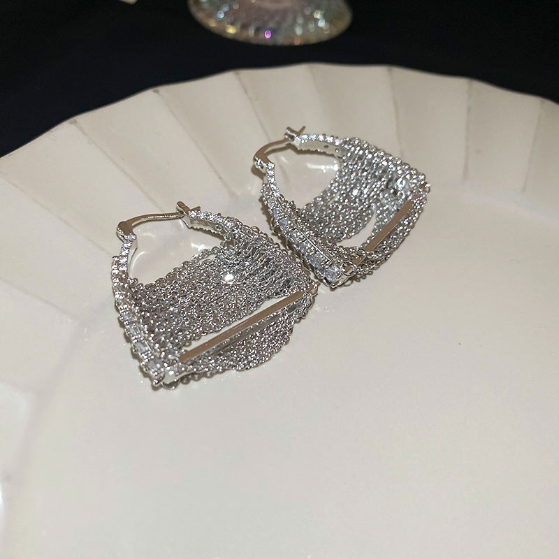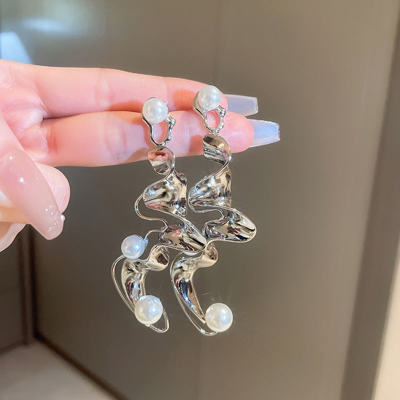 銀針跨境冷淡風銀色鑲鑽鋯石花朵珍珠耳環長款流蘇耳釘高級感耳飾