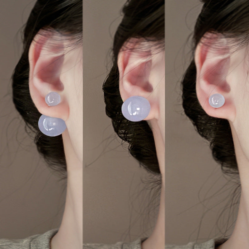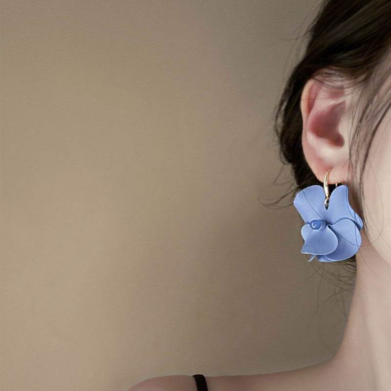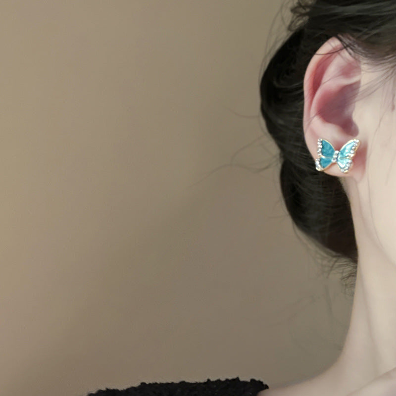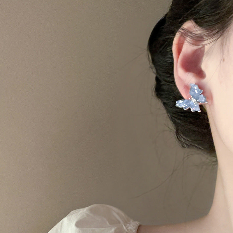 銀針霧霾藍色漸變滴油花朵蝴蝶愛心耳環氣質耳釘秋冬高級感耳飾