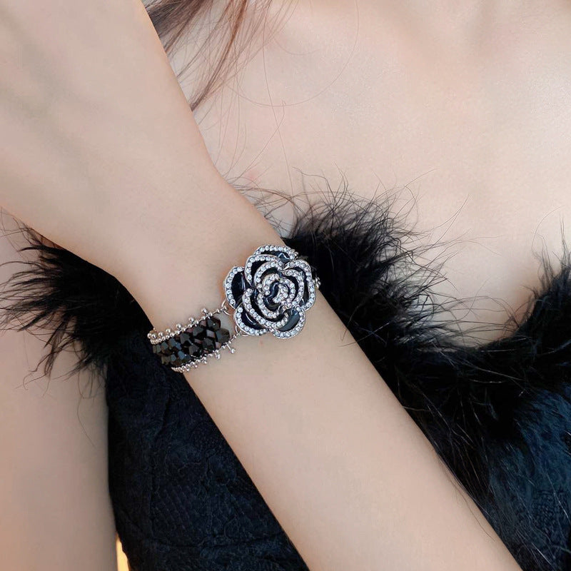 韓國復古個性鑲鑽滴油花朵水晶項鍊輕奢高級感氣質鎖骨鏈時尚項飾