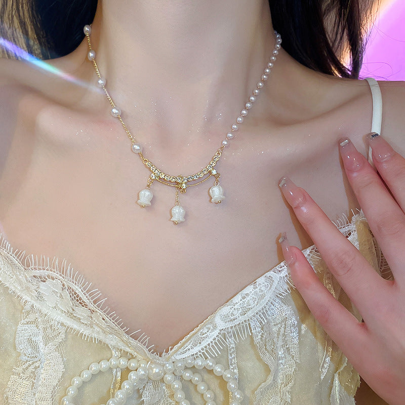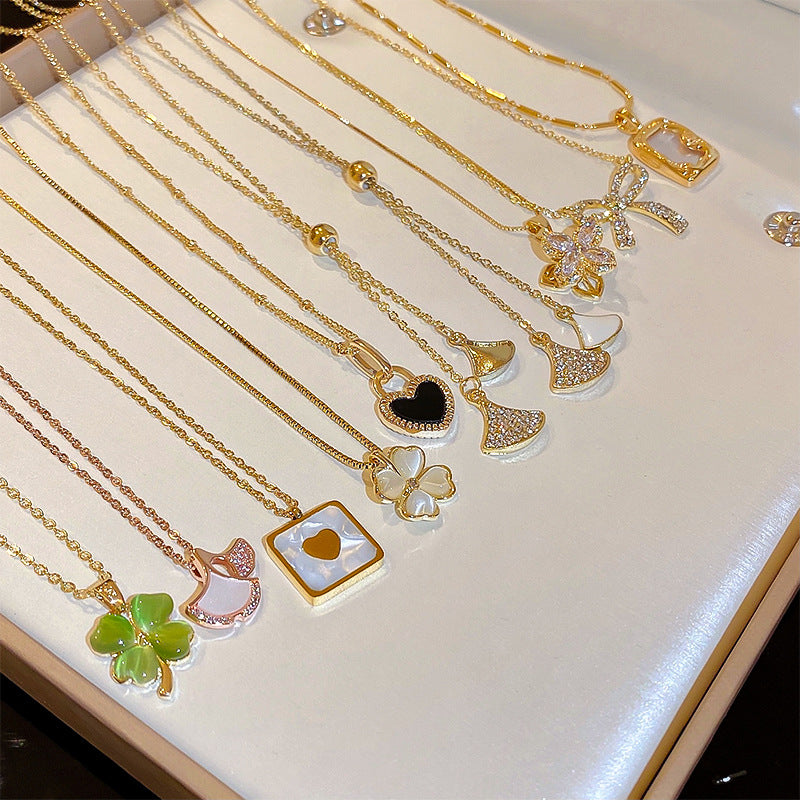韓國時尚鑲鑽花朵蝴蝶結愛心項鍊小清新設計鎖骨鏈項墜新款項飾女