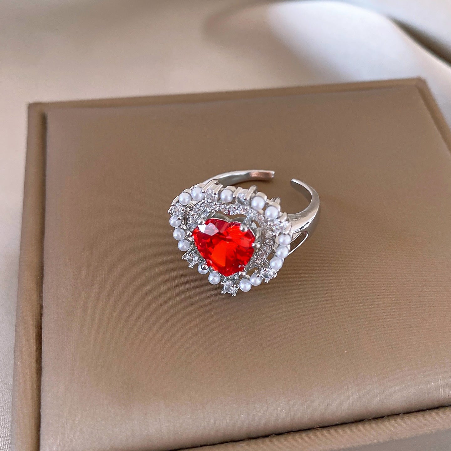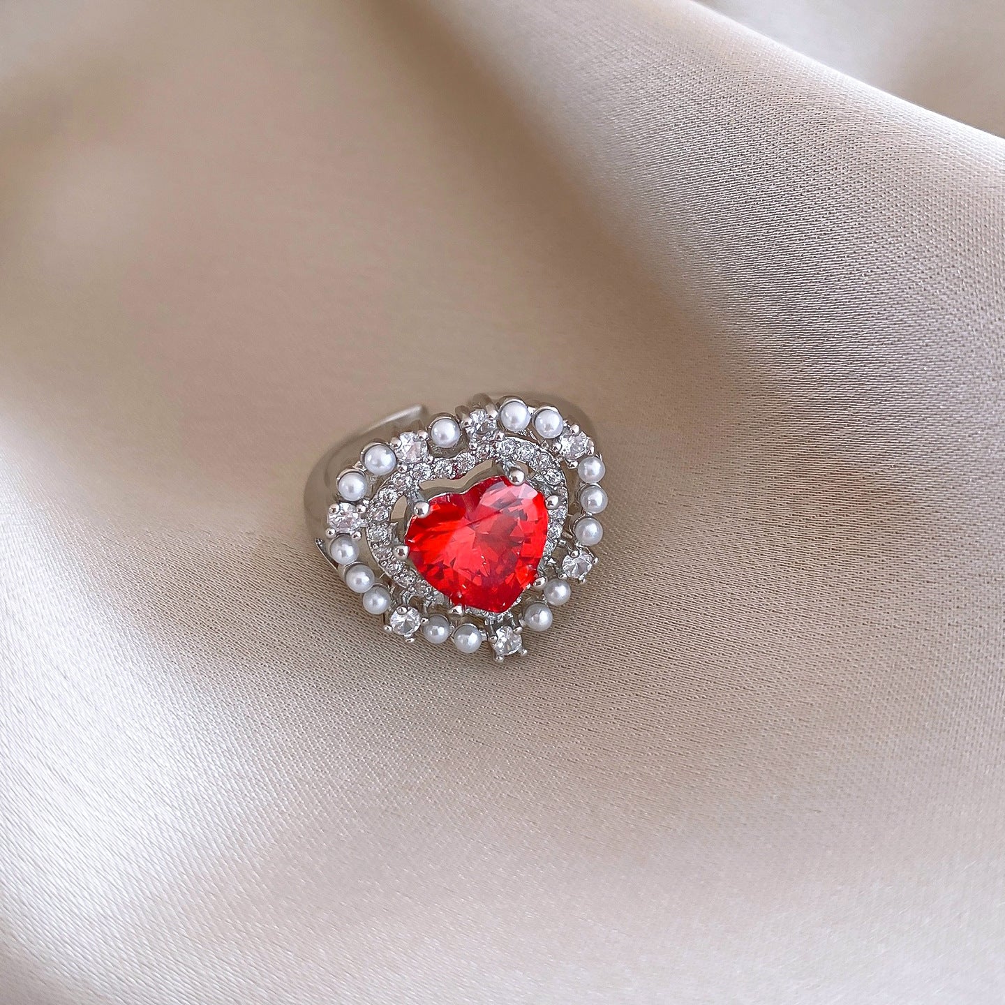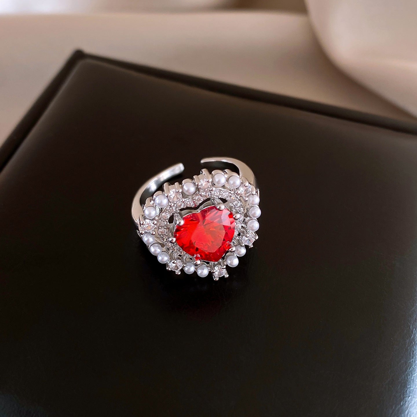韓國氣質鋯石愛心珍珠戒指輕奢高級感食指戒女精緻手飾設計感小衆