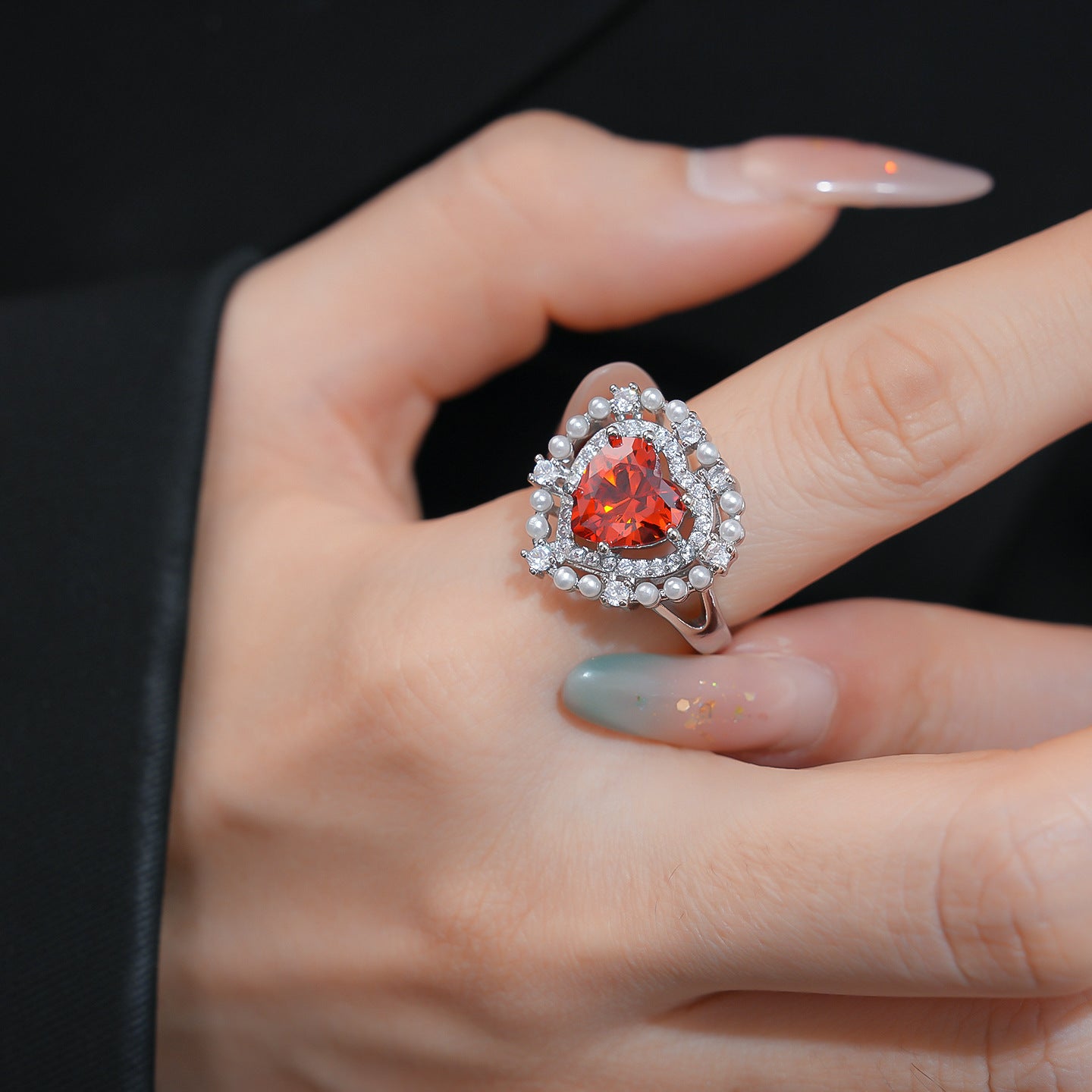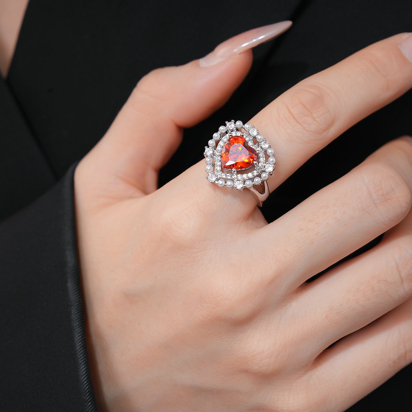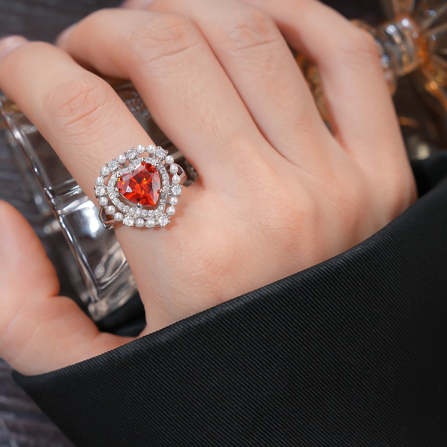 韓國氣質鋯石愛心珍珠戒指輕奢高級感食指戒女精緻手飾設計感小衆