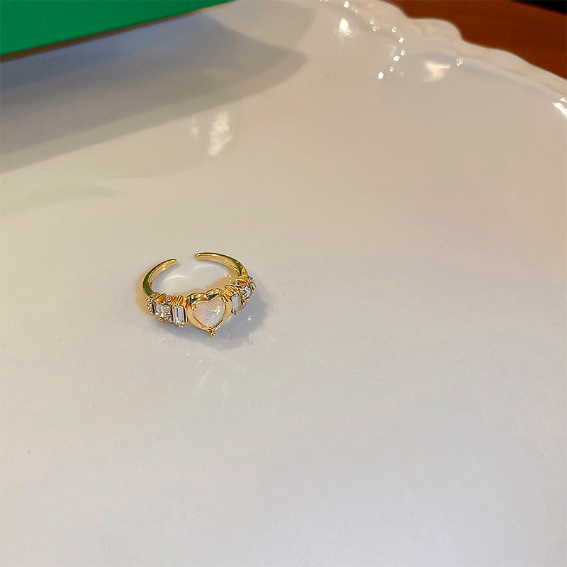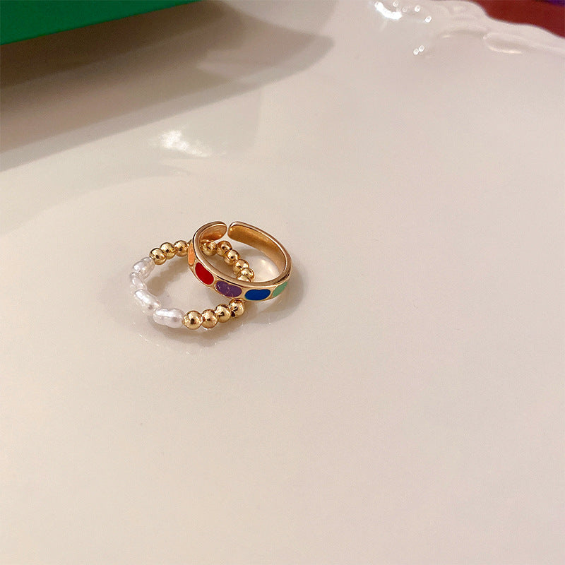 韓國ins風幾何珍珠花朵愛心開口戒指甜美氣質指環食指戒復古手飾