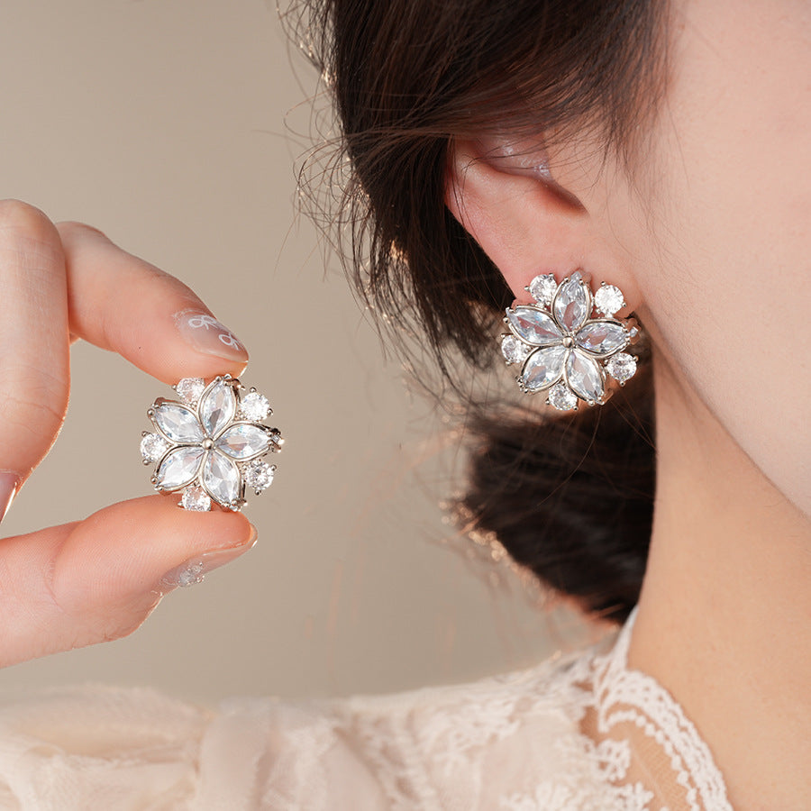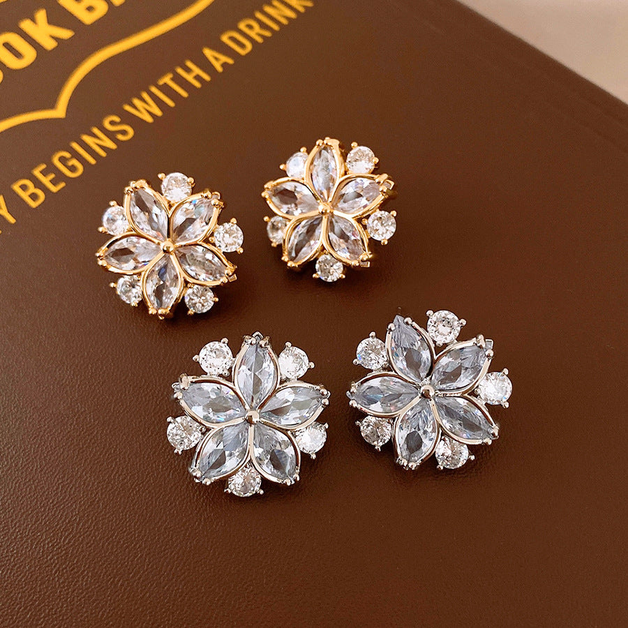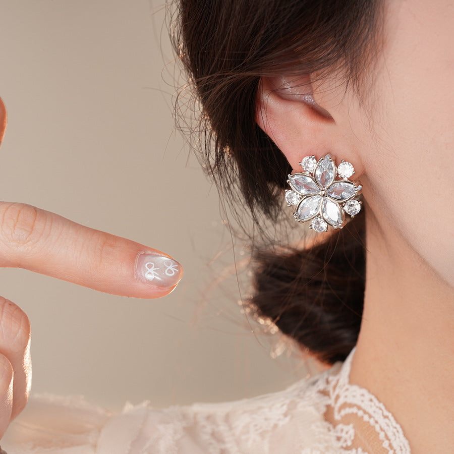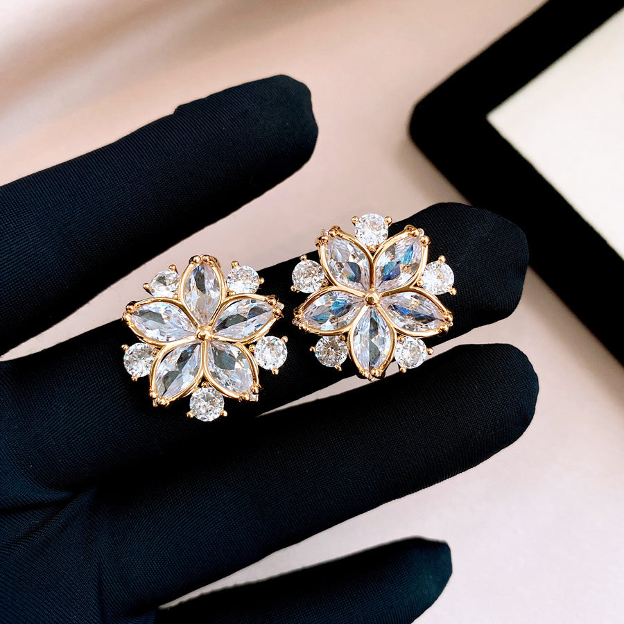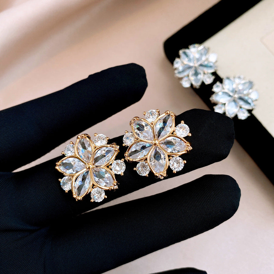 18k真金電鍍銀針鋯石花朵耳釘超閃精緻設計感耳環輕奢高級感耳飾