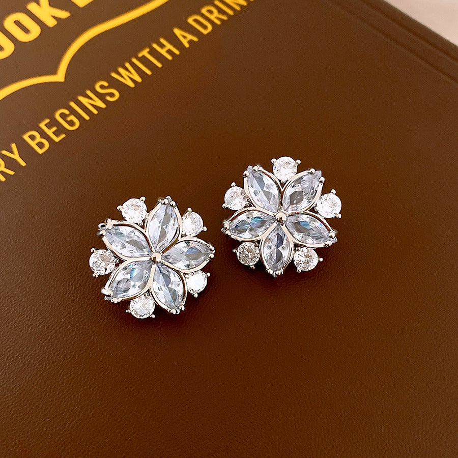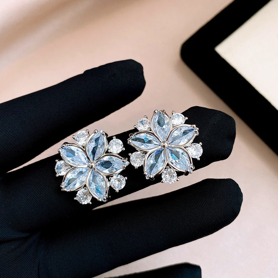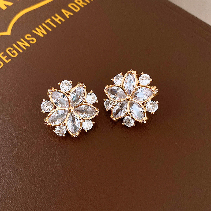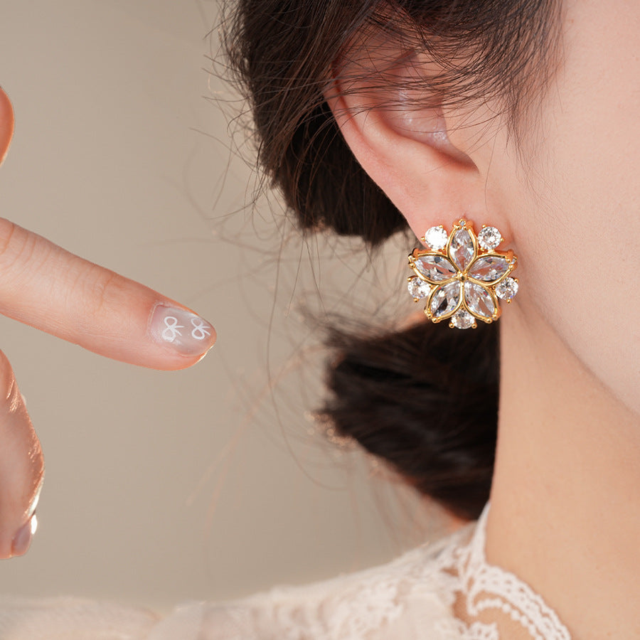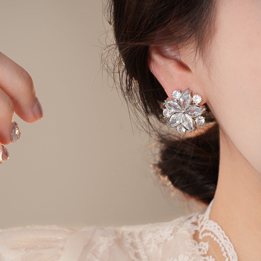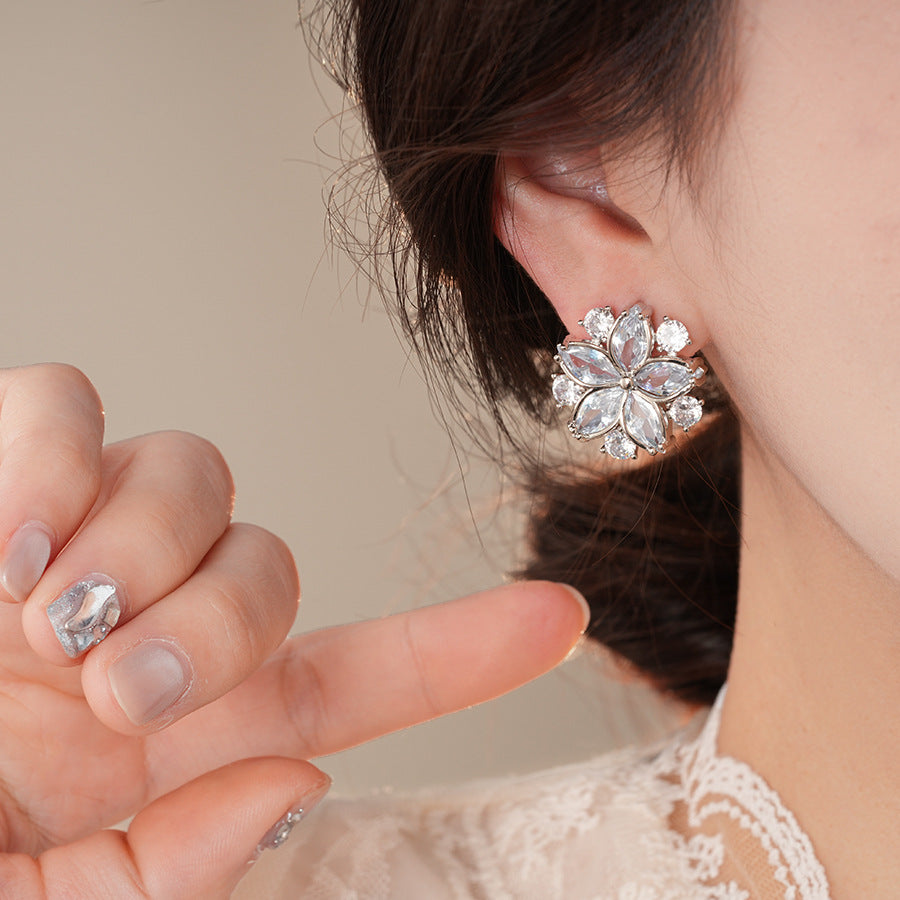 18k真金電鍍銀針鋯石花朵耳釘超閃精緻設計感耳環輕奢高級感耳飾