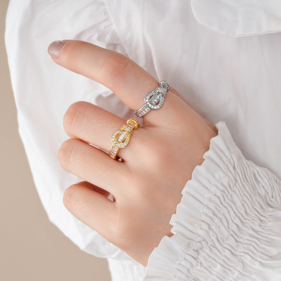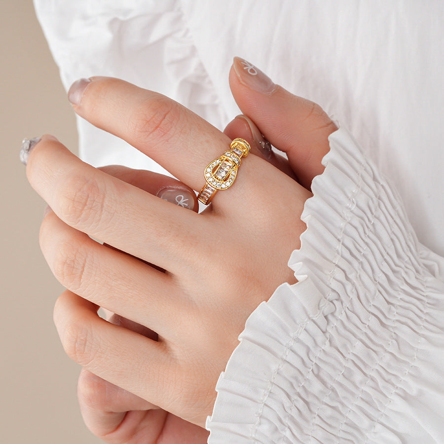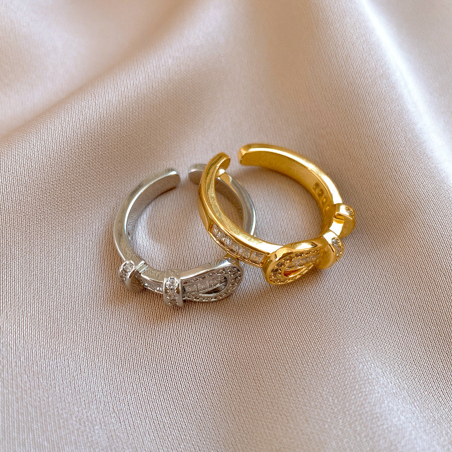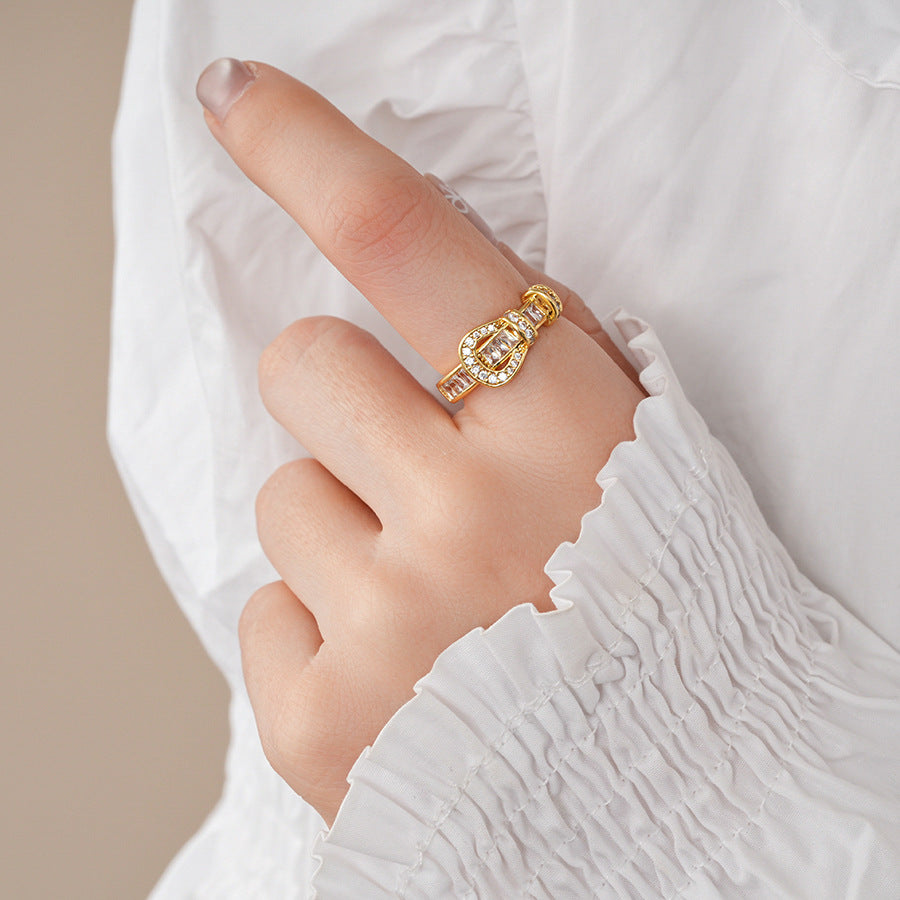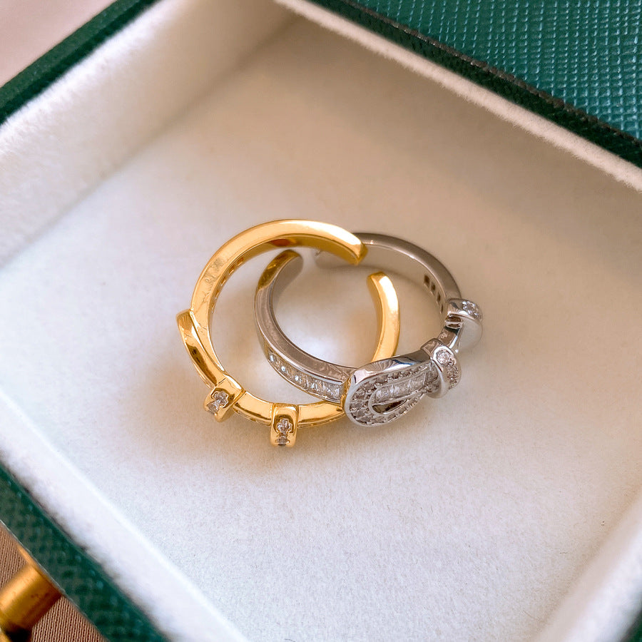 18k真金電鍍鋯石馬蹄開口戒指韓系ins冷淡風食指戒時尚輕奢手飾女
