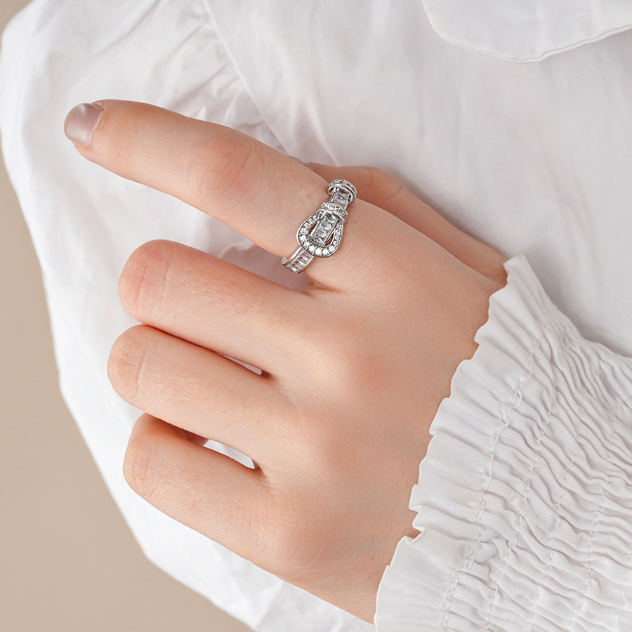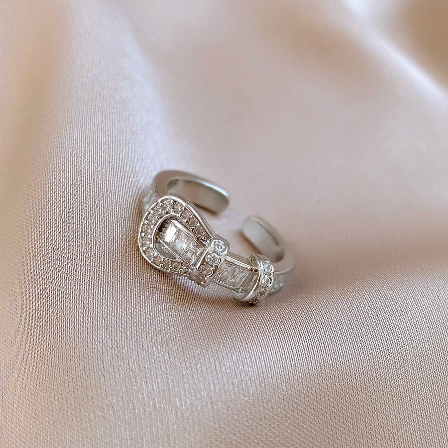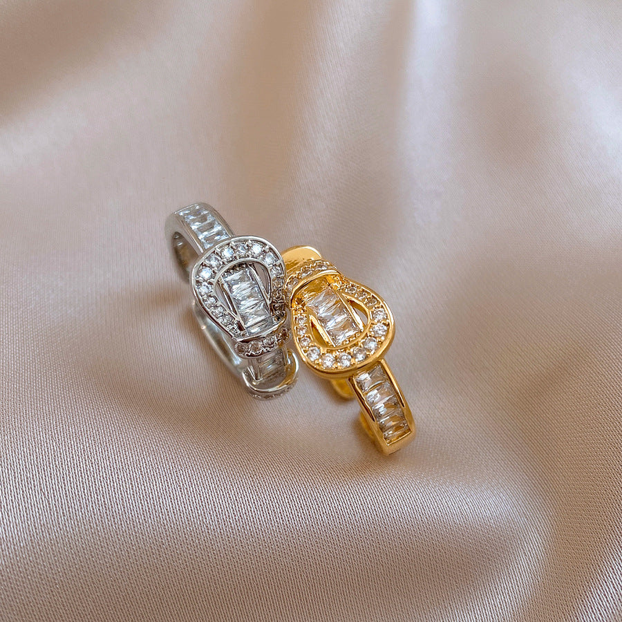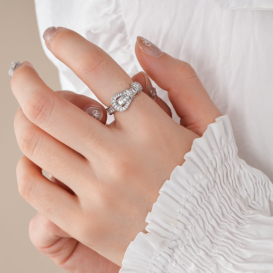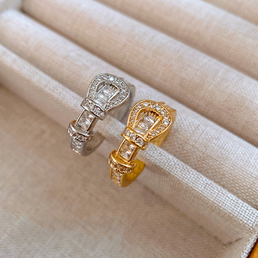 18k真金電鍍鋯石馬蹄開口戒指韓系ins冷淡風食指戒時尚輕奢手飾女